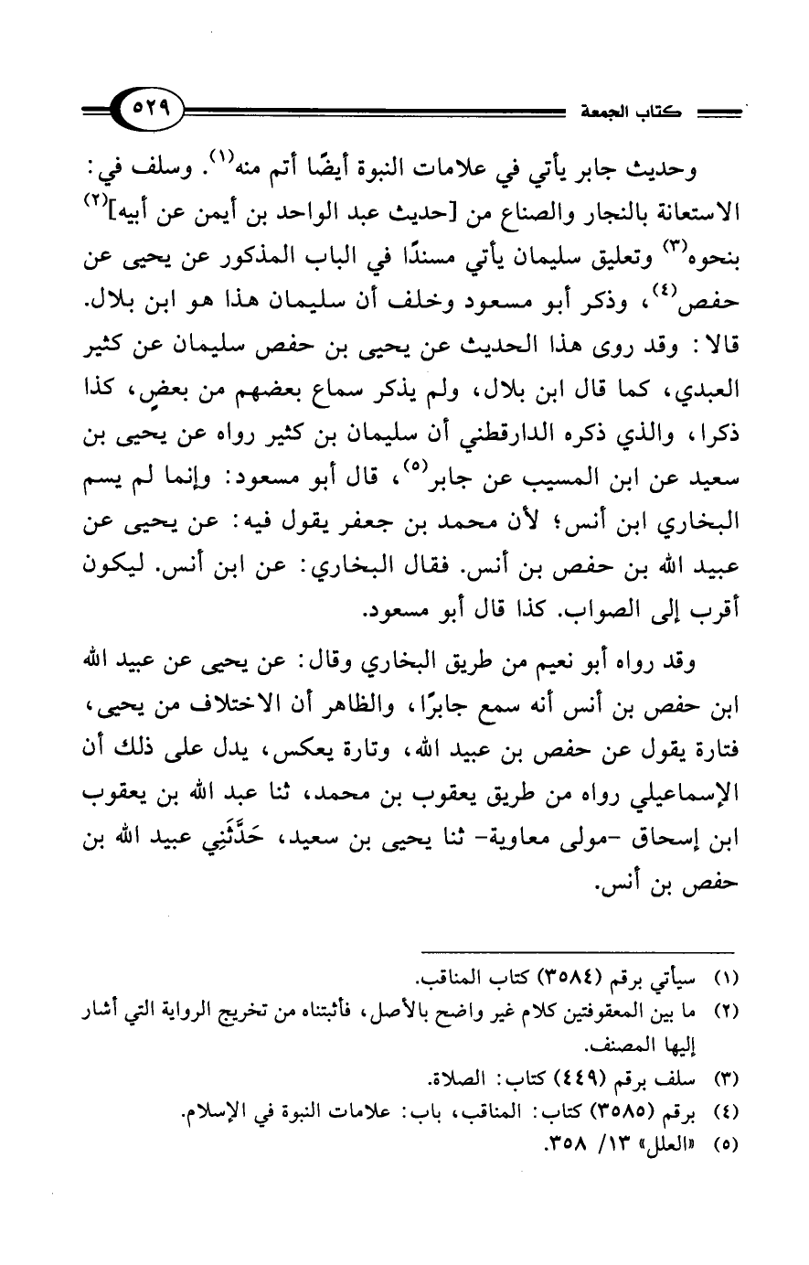 وقد رواه أبو نعيم من طريق البخاري وقال: عن يحيى عن عبيد الله ابن حفص بن أنس أنه سمع جابرًا، والظاهر أن الاختلاف من يحيى، فتارة يقول عن حفص بن عبيد الله، وتارة يعكس، يدل على ذلك أن الإسماعيلي رواه من طريق يعقوب بن محمد، ثنا عبد الله بن يعقوب ابن إسحاق -مولى معاوية- ثنا يحيى بن سعيد، حَدَّثَنِي عبيد الله بن حفص بن أنس.