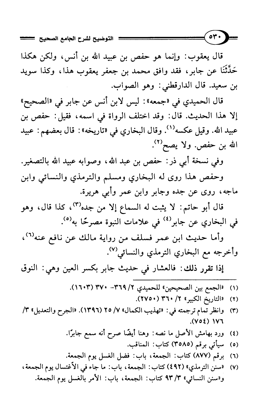 قال يعقوب: وإنما هو حفص بن عبيد الله بن أنس، ولكن هكذا حَدَّثَنَا عن جابر، فقد وافق محمد بن جعفر يعقوب هذا، وكذا سويد بن سعيد. قال الدارقطني: وهو الصواب.