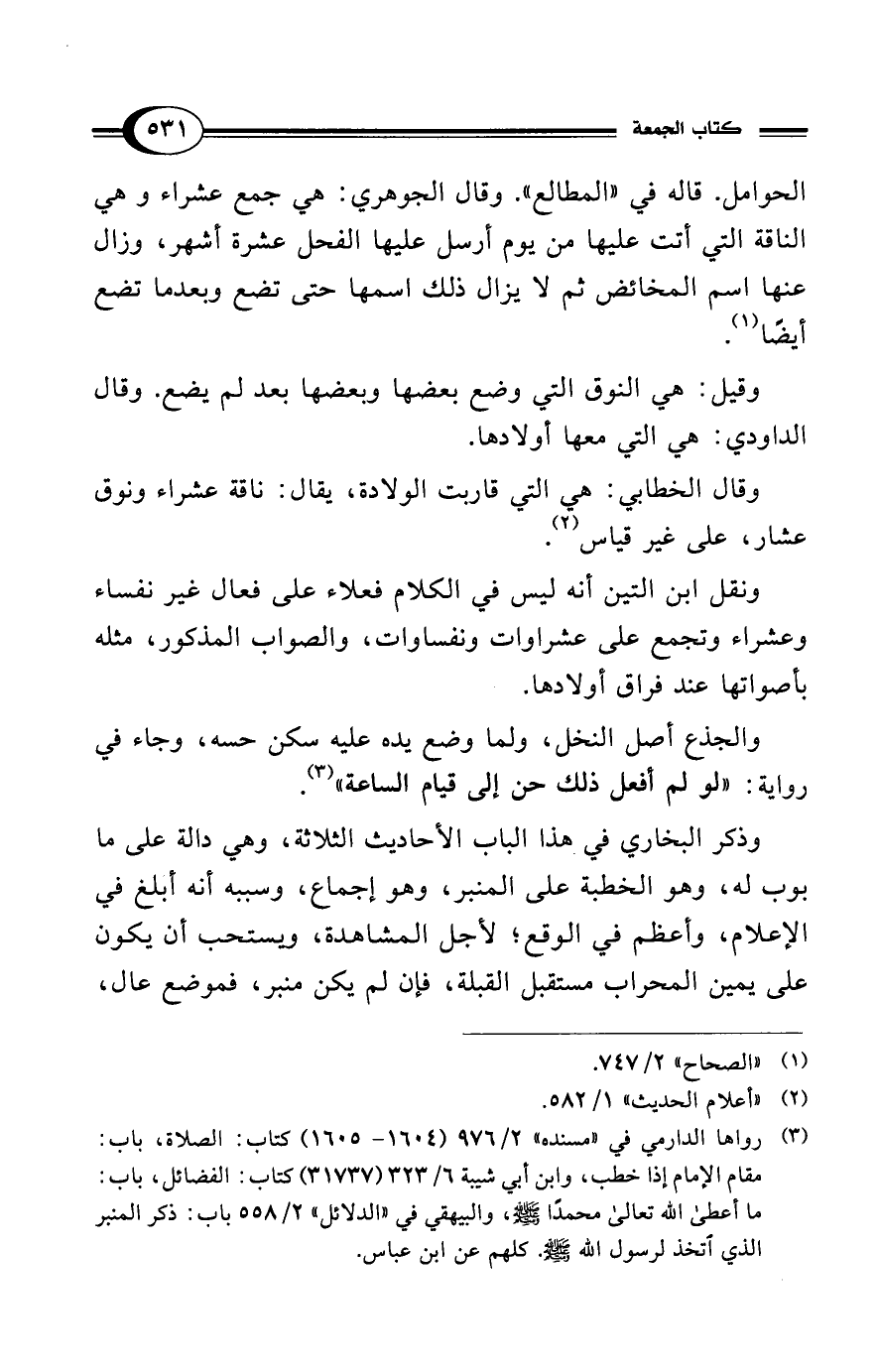 (¬3) رواها الدارمي في "مسنده" 2/ 976 (1604 - 1605) كتاب: الصلاة، باب: مقام الإمام إذا خطب، وابن أبي شيبة 6/ 323 (31737) كتاب: الفضائل، باب: ما أعطى الله تعالى محمدًا - صلى الله عليه وسلم -، والبيهقي في "الدلائل" 2/ 558 باب: ذكر المنبر الذي اتخذ لرسول الله - صلى الله عليه وسلم -. كلهم عن ابن عباس.