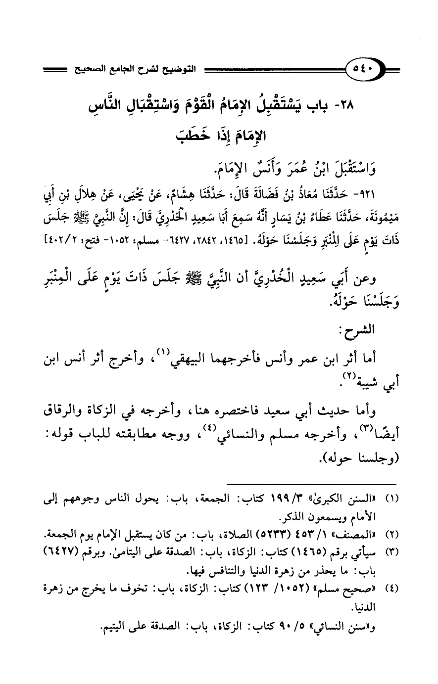 (¬1) "السنن الكبرى" 3/ 199 كتاب: الجمعة، باب: يحول الناس وجوههم إلى الإمام ويسمعون الذكر.