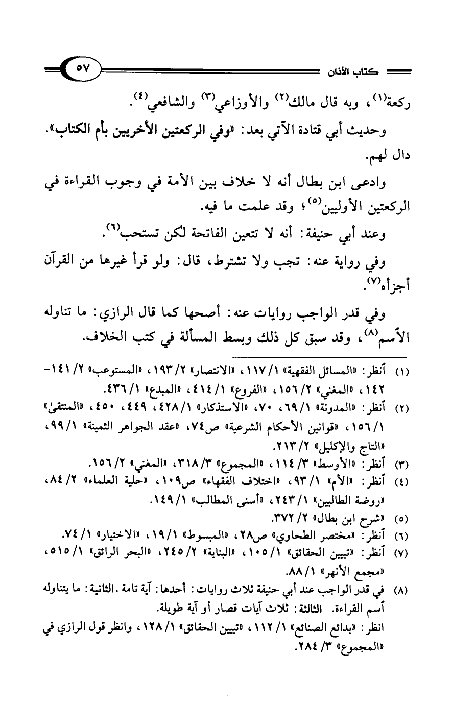 (¬7) انظر: "تبيين الحقائق" 1/ 105، "البناية" 2/ 245، "البحر الرائق" 1/ 515، "مجمع الأنهر" 1/ 88.