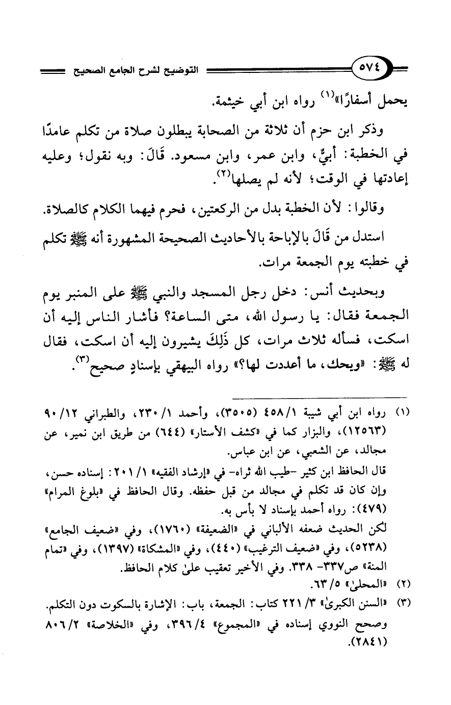 (¬3) "السنن الكبرى" 3/ 221 كتاب: الجمعة، باب: الإشارة بالسكوت دون التكلم.