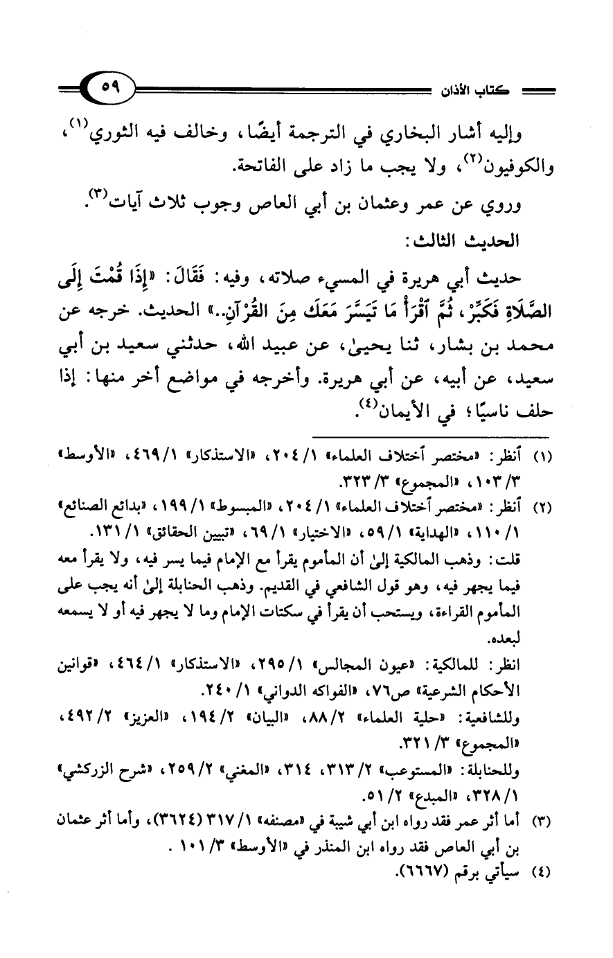 (¬3) أما أثر عمر فقد رواه ابن أبي شيبة في "مصنفه" 1/ 317 (3624)، وأما أثر عثمان بن أبي العاص فقد رواه ابن المنذر في "الأوسط" 3/ 101.