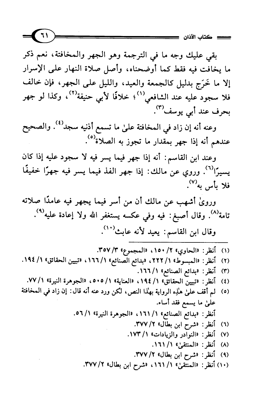 (¬10) انظر: "المنتقى" 1/ 161، "شرح ابن بطال" 2/ 377.