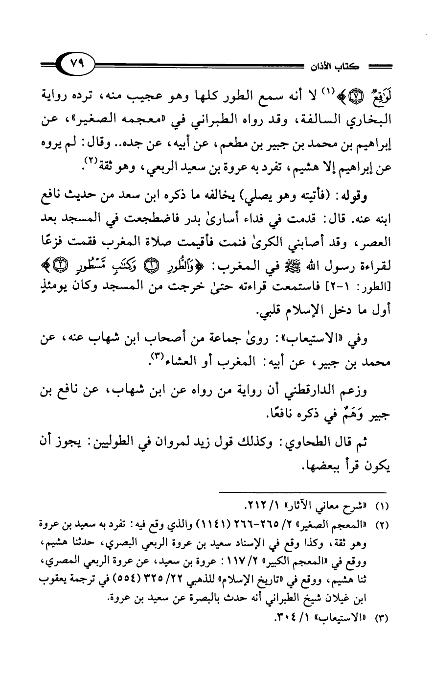 وفي "الاستيعاب": روى جماعة من أصحاب ابن شهاب عنه، عن محمد بن جبير، عن أبيه: المغرب أو العشاء (¬3).