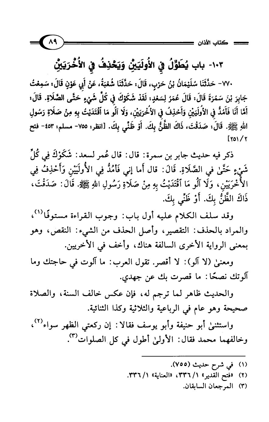103 - باب يُطَوِّلُ فِي الأُولَيَيْنِ وَيَحْذِفُ فِي الُأخْرَيَيِنْ