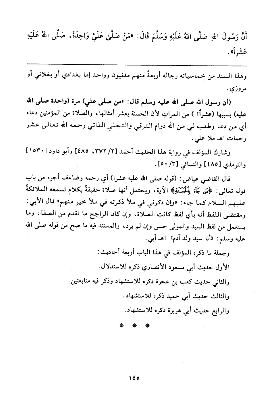 أَنَّ رَسُولَ اللَّهِ صلى الله عليه وسلم قَال: "مَنْ صَلَّى عَلَيَّ وَاحِدَةً, صَلَّى اللَّهُ عَلَيهِ عَشْرًا"