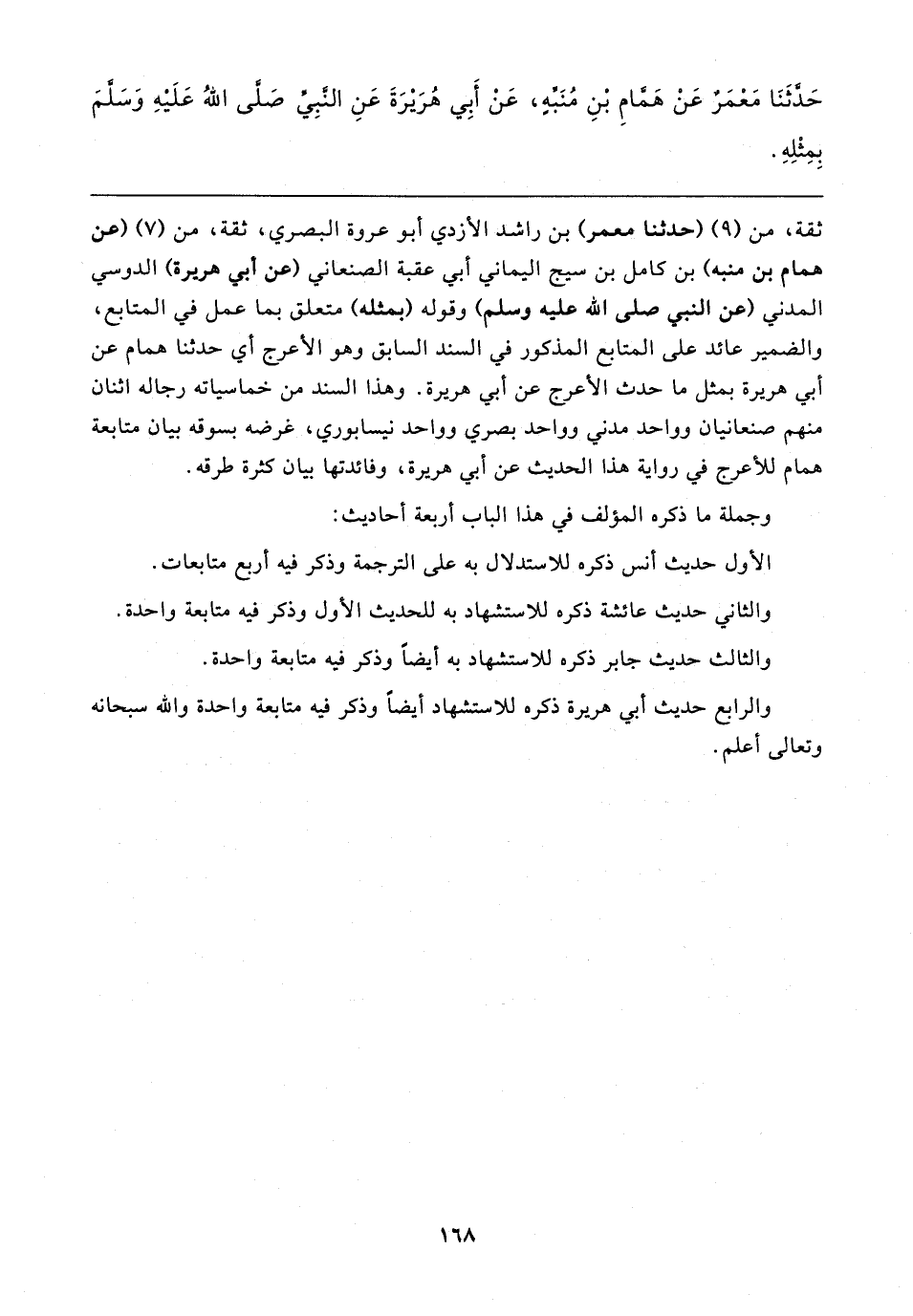 والرابع حديث أبي هريرة ذكره للاستشهاد أيضًا وذكر فيه متابعة واحدة والله سبحانه وتعالى أعلم.