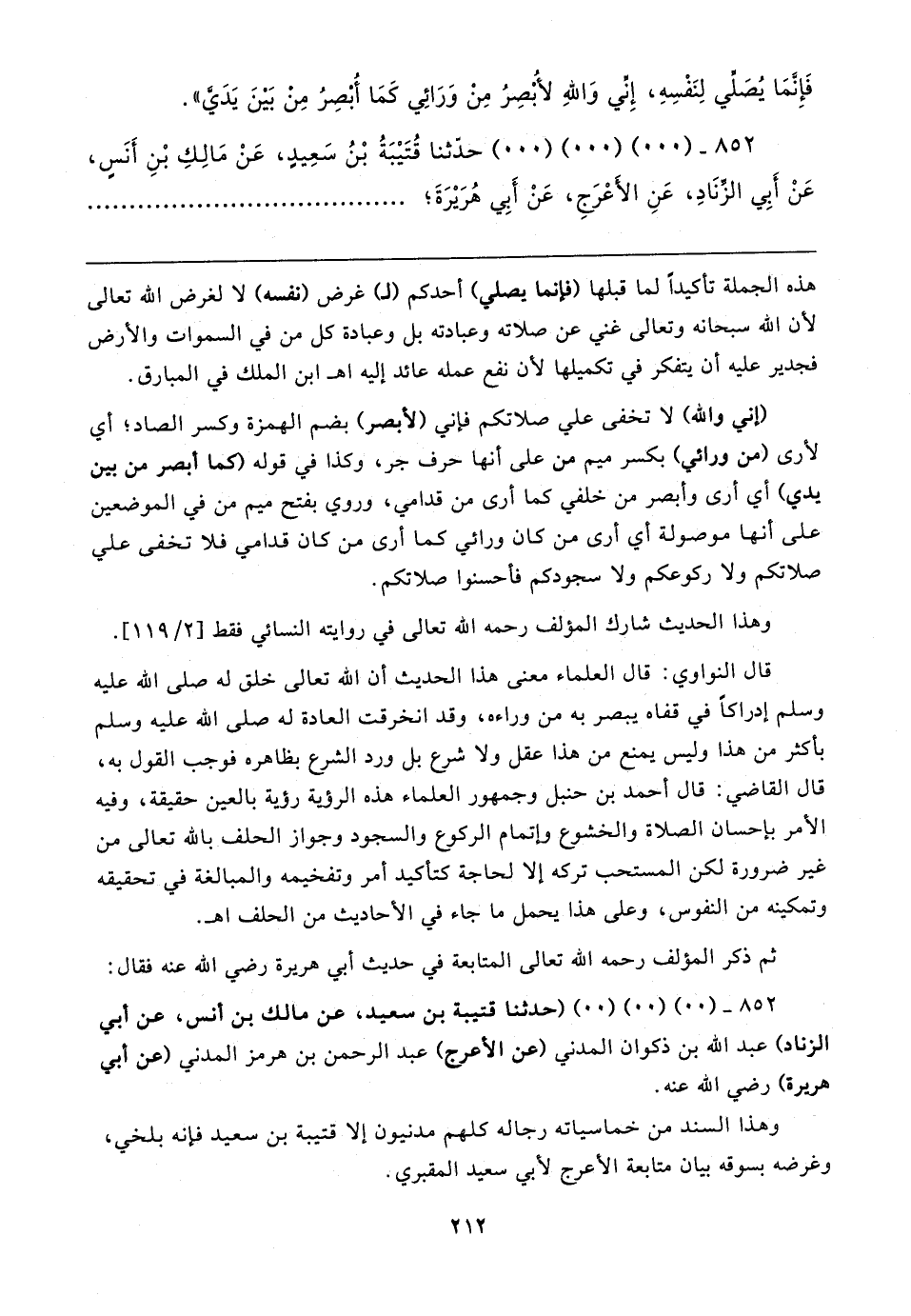 ٨٥٢ - (٠٠) (٠٠) (٠٠) (حَدَّثَنَا قتيبة بن سعيد، عن مالك بن أنس، عن أبي الزناد) عبد الله بن ذكوان المدني (عن الأعرج) عبد الرحمن بن هرمز المدني (عن أبي هريرة) رضي الله عنه.