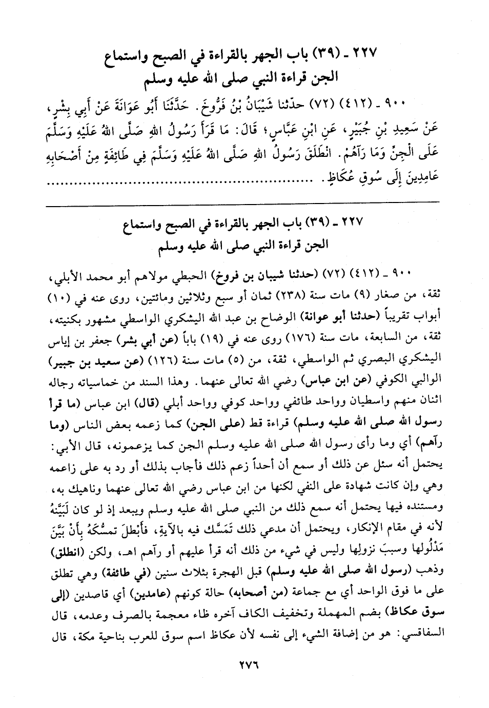 ٩٠٠ - (٤١٢) (٧٢) حدثنا شَيبَانُ بْنُ فَرُّوخَ. حَدَّثَنَا أَبُو عَوَانَةَ عَنْ أبِي بِشْرٍ، عَنْ سَعِيدِ بْنِ جُبَيرٍ، عَنِ ابْنِ عَبَّاسٍ؛ قَال: مَا قَرَأَ رَسُولُ اللهِ صَلى اللهُ عَلَيهِ وَسَلمَ عَلَى الْجِنِّ وَمَا رَآهُمْ. انْطَلَقَ رَسُولُ اللهِ صَلى اللهُ عَلَيهِ وَسَلمَ فِي طَائفَةٍ مِنْ أَصْحَابِهِ عَامِدِينَ إِلَى سُوقِ عُكَاظٍ. . . . . . . . . . ... ،