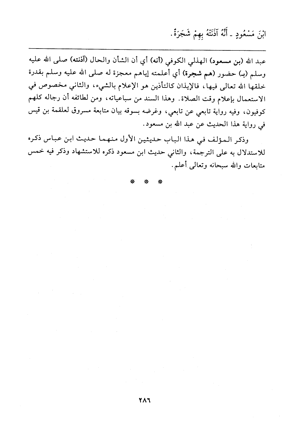 ابن مسعود -أنه آذنته بهم شجرةٌ