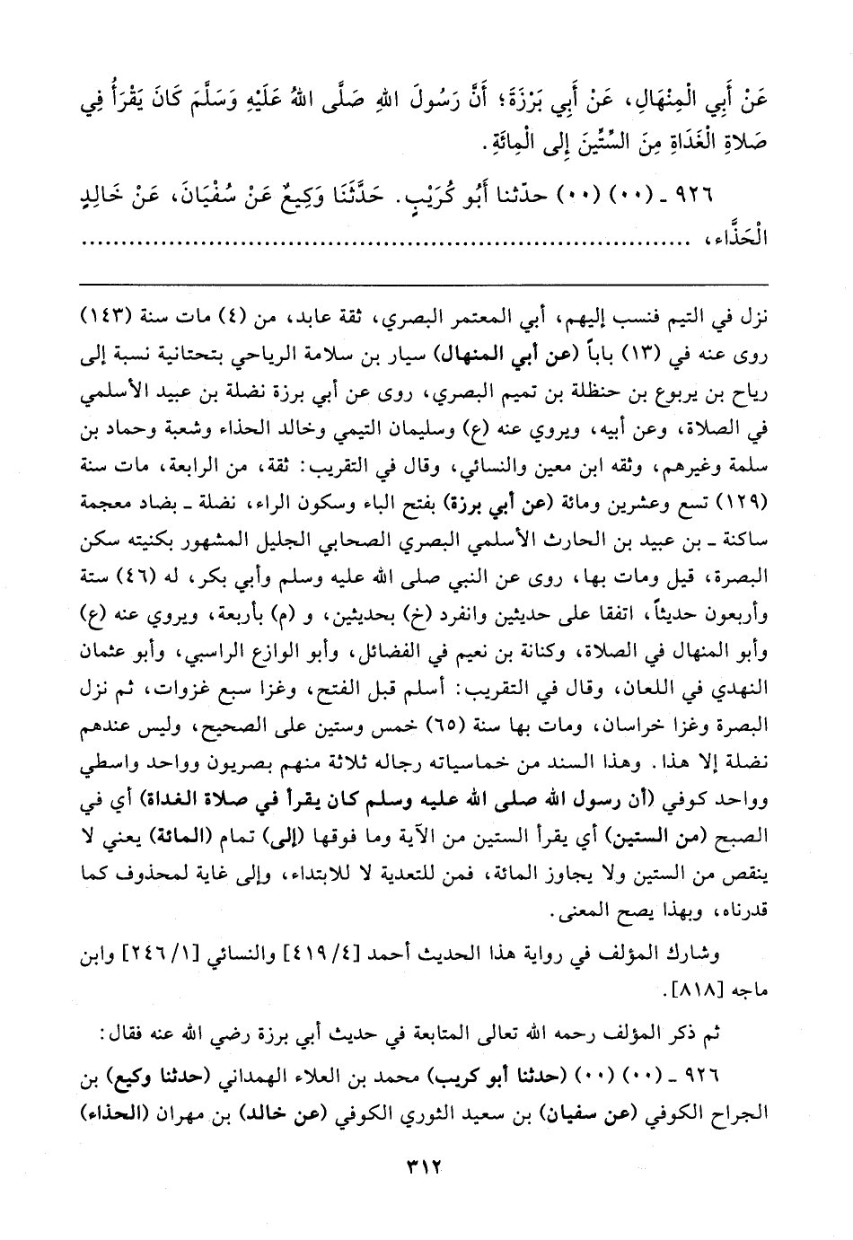 ٩٢٦ - (. .) (. .) (حدثنا أبو كريب) محمَّد بن العلاء الهمداني (حدثنا وكيع) بن الجراح الكوفي (عن سفيان) بن سعيد الثوري الكوفي (عن خالد) بن مهران (الحذاء)