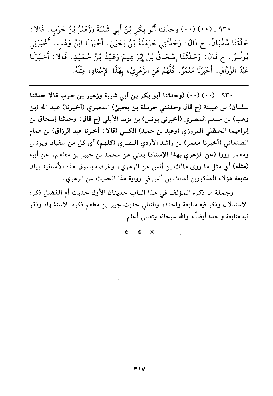٩٣٠ - (. .) (. .) وحدّثنا أَبُو بَكْرِ بْنُ أَبِي شَيبَةَ وَزُهَيرُ بْنُ حَرْبٍ. قَالا: حَدَّثَنَا سُفْيَانُ. ح قَال: وَحَدَّثَنِي حَرْمَلَةُ بْنُ يَحْيَى. أَخْبَرَنَا ابْنُ وَهْبٍ. أَخْبَرَنِي يُونُسُ. ح قَال: وَحَدَّثَنَا إِسْحَاقُ بْنُ إِبْرَاهِيمَ وَعَبْدُ بْنُ حُمَيدٍ. قَالا: أَخْبَرَنَا عَبْدُ الرَّزَّاقِ. أَخْبَرَنَا مَعْمَرٌ. كُلُّهُمْ عَنِ الزُّهْرِيِّ، بِهَذَا الإِسْنَادِ، مِثْلَهُ