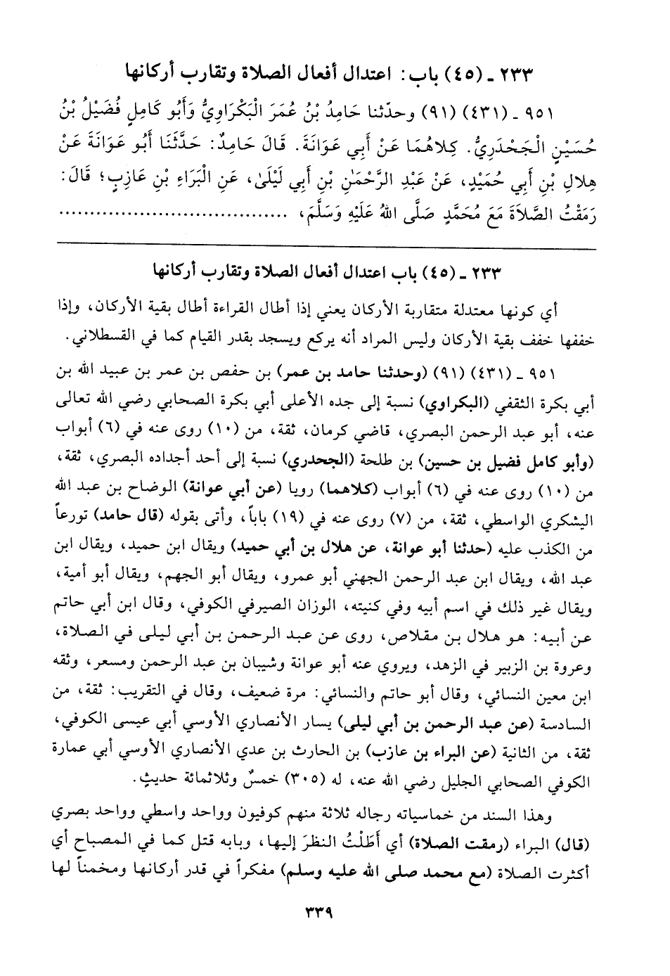 ٢٣٣ - (٤٥) باب اعتدال أفعال الصلاة وتقارب أركانها
