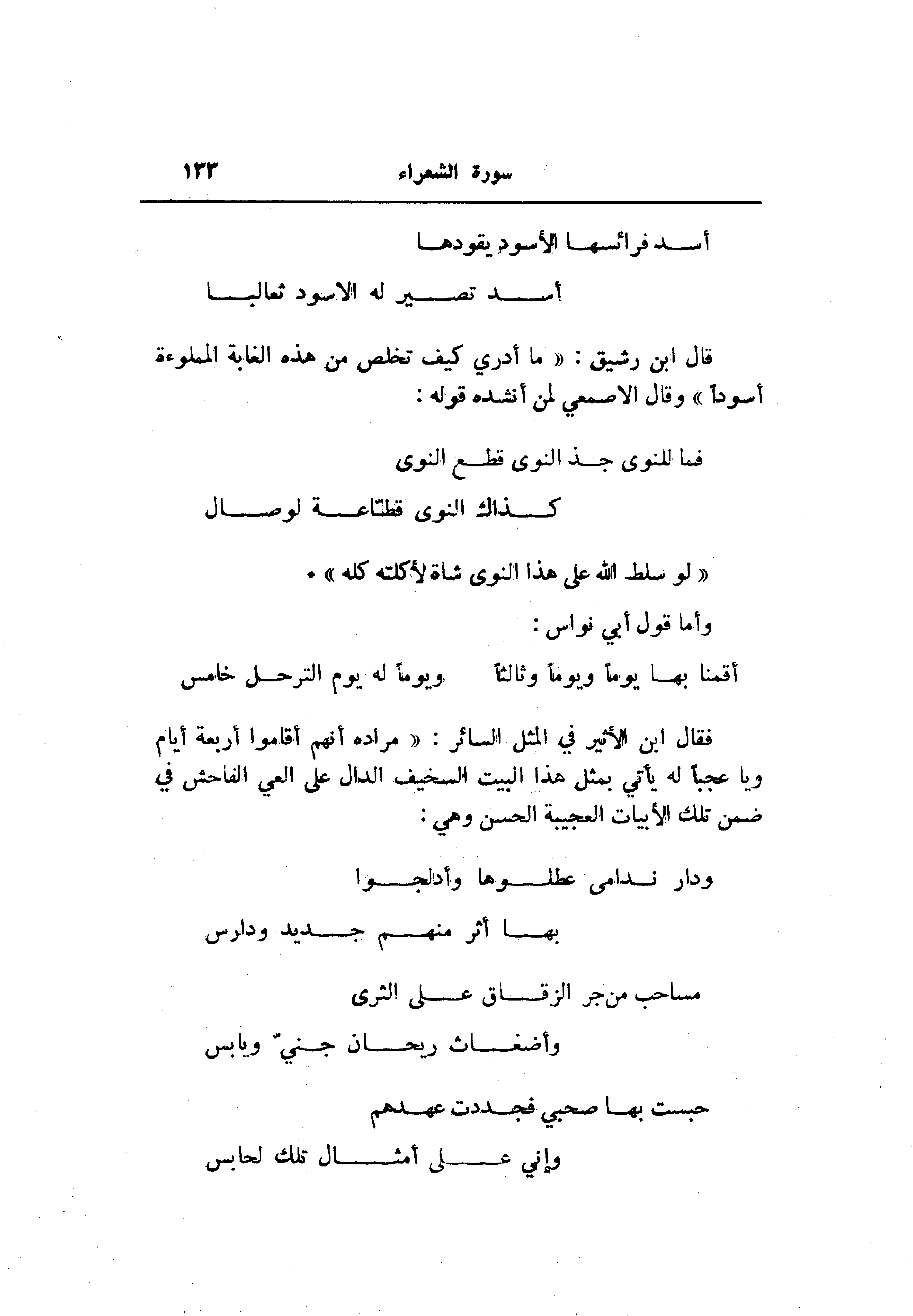 قال ابن رشيق: «ما أدري كيف تخلص من هذه الغابة المملوءة أسودا» وقال الاصمعي لمن أنشده قوله: