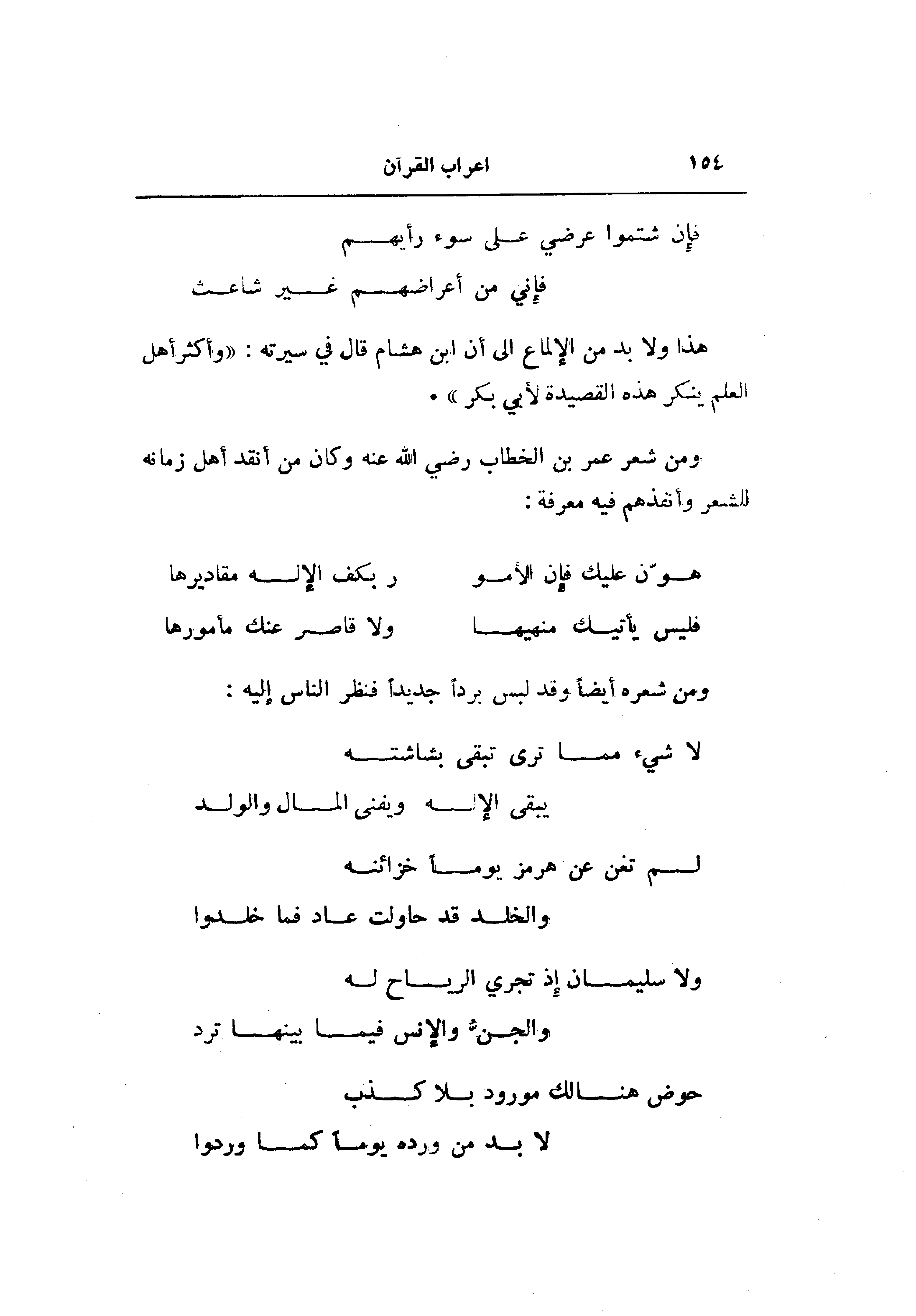 ومن شعر عمر بن الخطاب رضي الله عنه وكان من أنقد أهل زمانه للشعر وأنفذهم فيه معرفة: