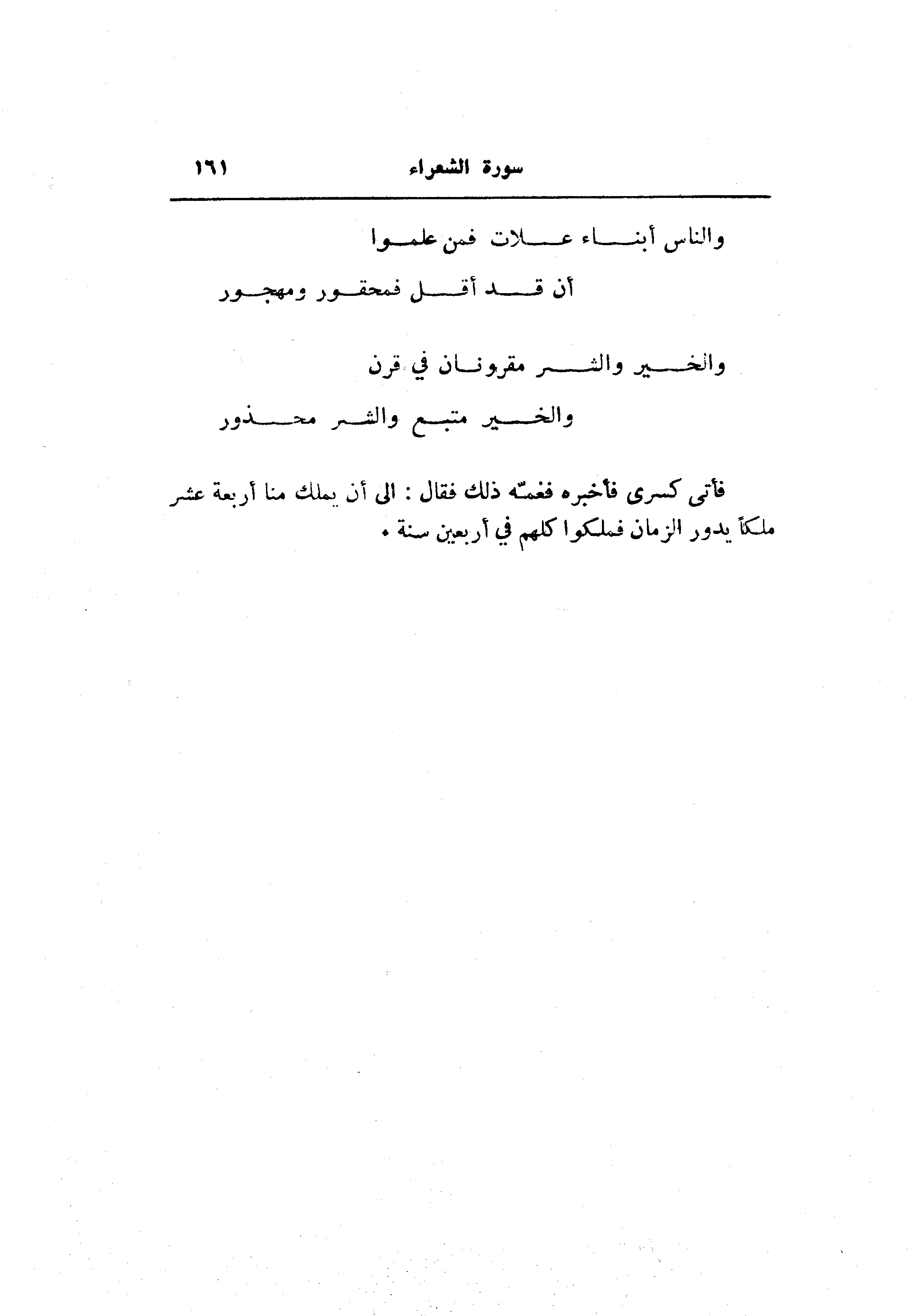 فأتى كسرى فأخبره فغمّه ذلك فقال: الى أن يملك منا أربعة عشر ملكا يدور الزمان فملكوا كلهم في أربعين سنة.