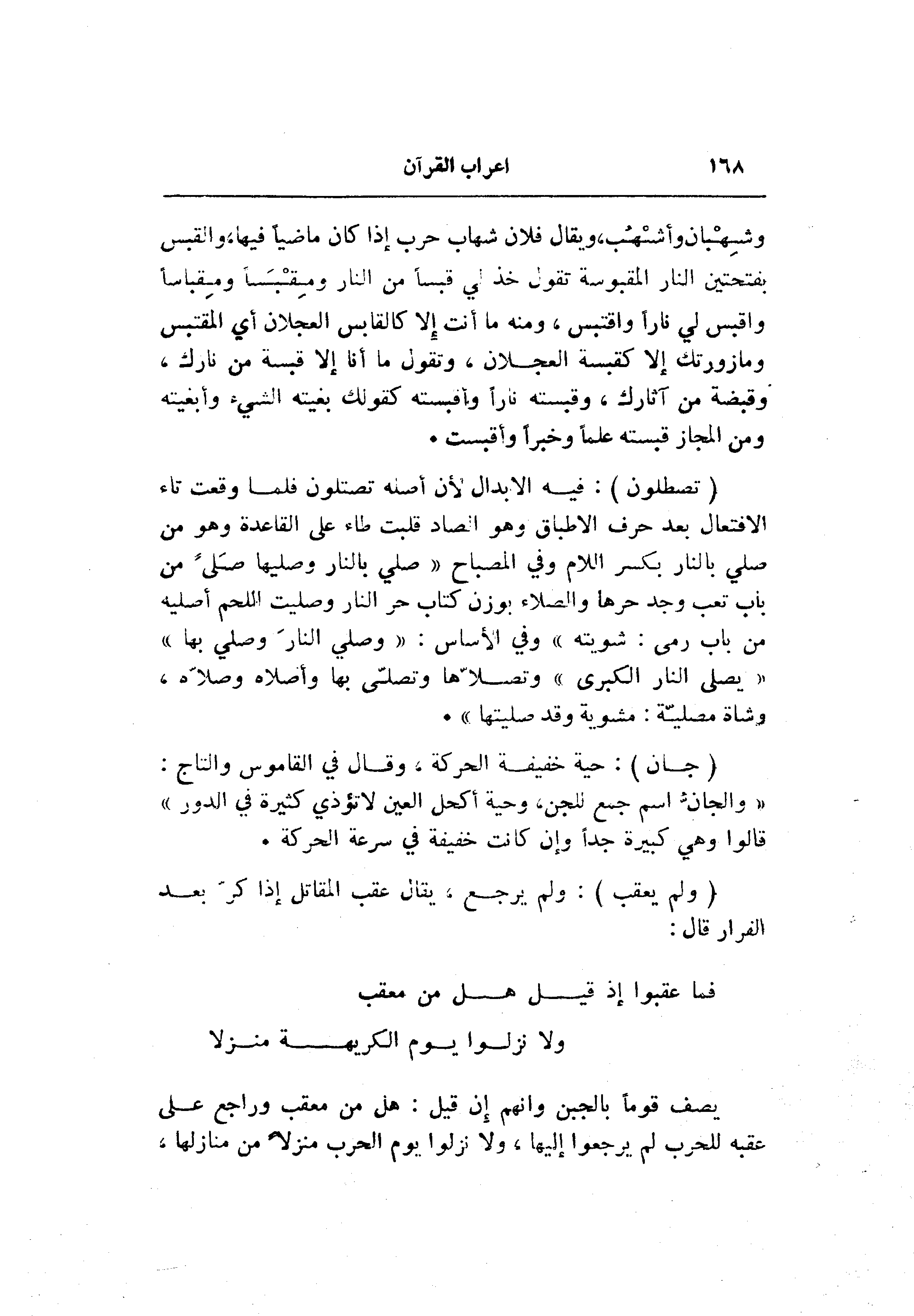 (تَصْطَلُونَ) : فيه الابدال لأن أصله تصتلون فلما وقعت تاء الافتعال بعد حرف الاطباق وهو الصاد قلبت طاء على القاعدة وهو من صلي بالنار بكسر اللام وفي المصباح «صلي بالنار وصليها صلى من باب تعب وجد حرها والصلاء بوزن كتاب حر النار وصليت اللحم أصليه من باب رمى: شويته» وفي الأساس: «وصلي النار وصلي بها» «يصلى النار الكبرى» وتصلّاها وتصلّى بها وأصلاه وصلّاه، وشاة مصليّة: مشوية وقد صليتها» .