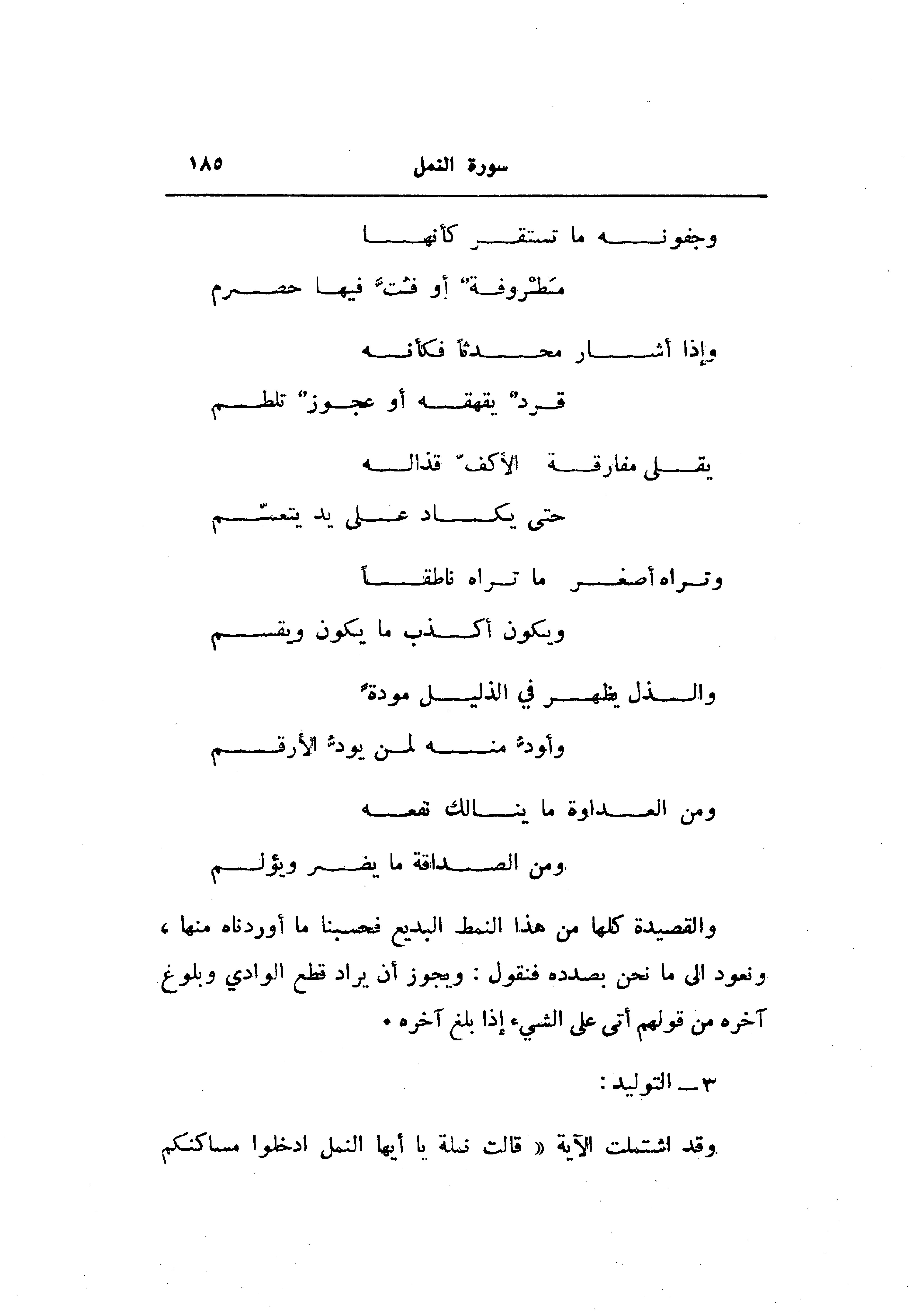 والقصيدة كلها من هذا النمط البديع فحسبنا ما أوردناه منها، ونعود الى ما نحن بصدده فنقول: ويجوز أن يراد قطع الوادي وبلوغ آخره من قولهم أتى على الشيء إذا بلغ آخره.