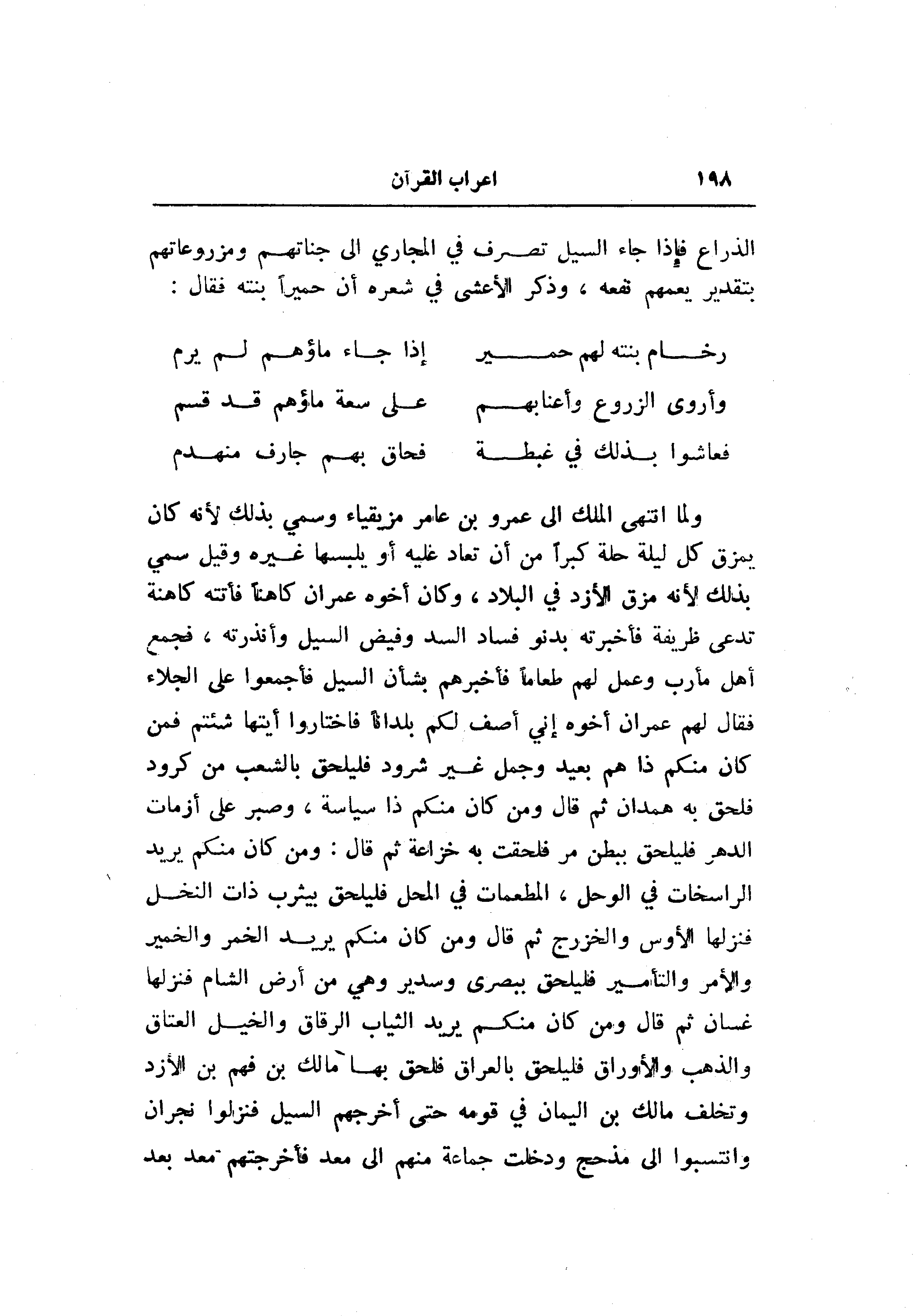 الذراع فإذا جاء السيل تصرف في المجاري الى جناتهم ومزروعاتهم بتقدير يعمهم نفعه، وذكر الأعشى في شعره أن حميرا بنته فقال: