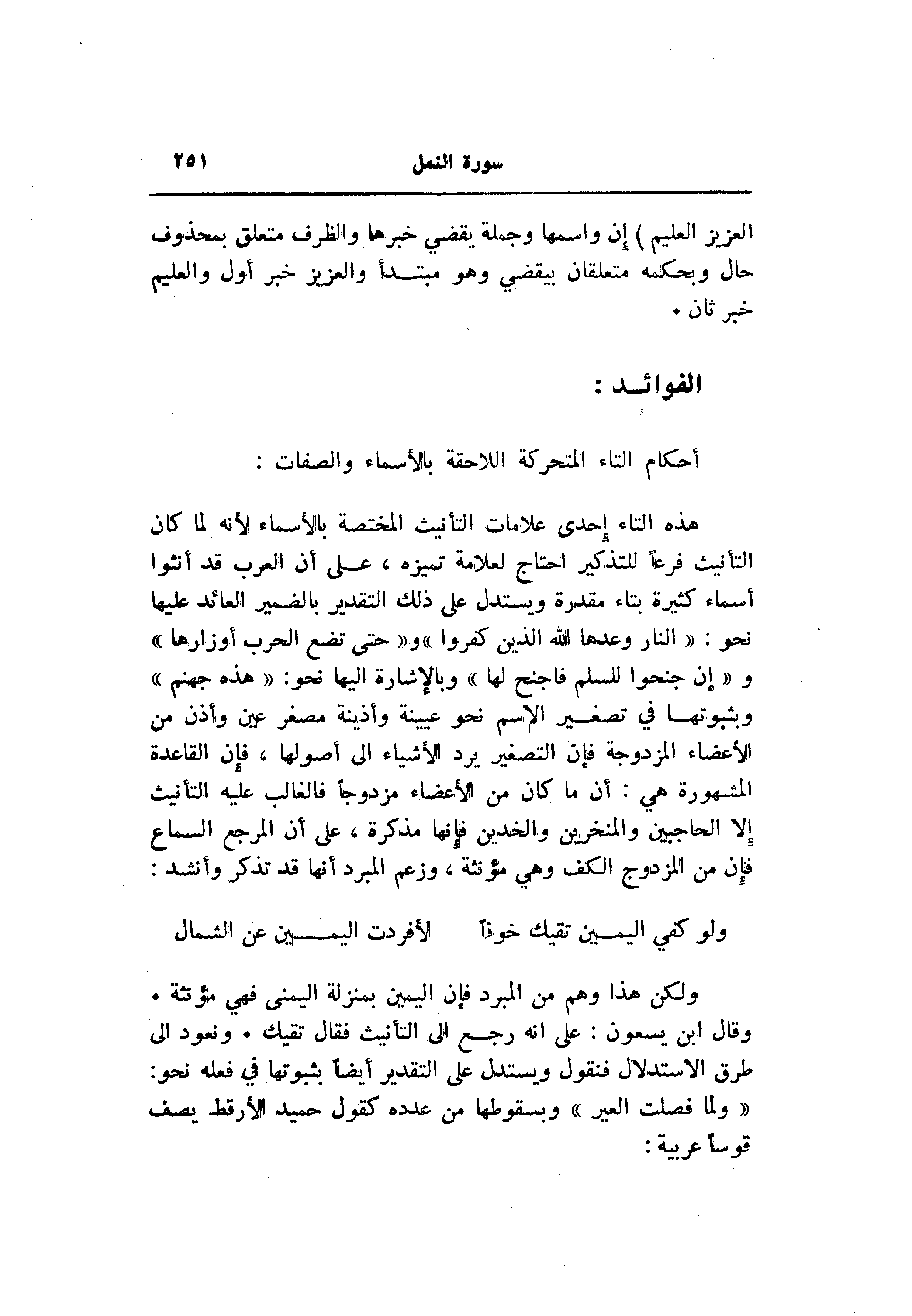 ولكن هذا وهم من المبرد فإن اليمين بمنزلة اليمنى فهي مؤنثة.