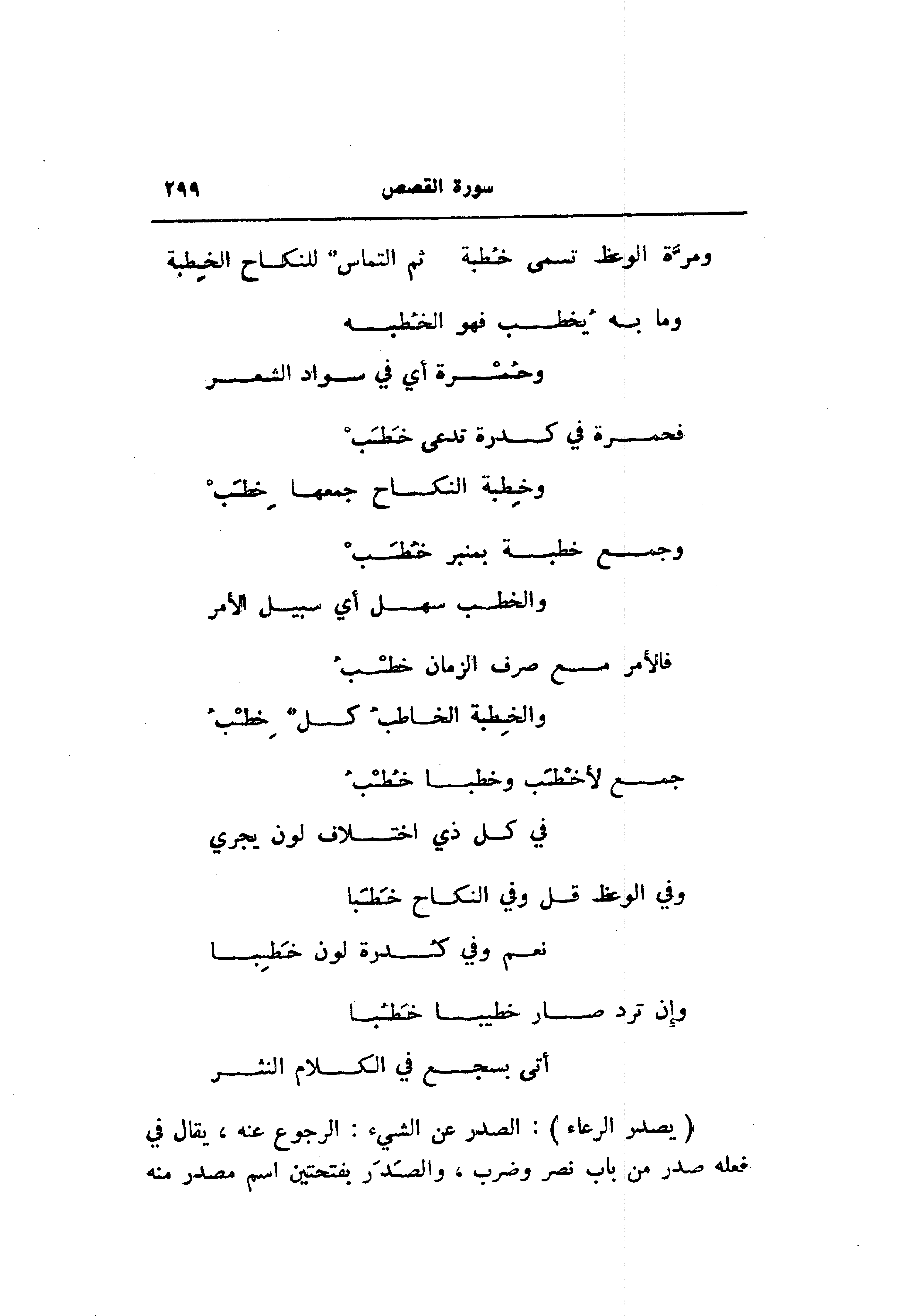 فحمرة في كدرة تدعى خطب ... وخطبة النكاح جمعها خطب