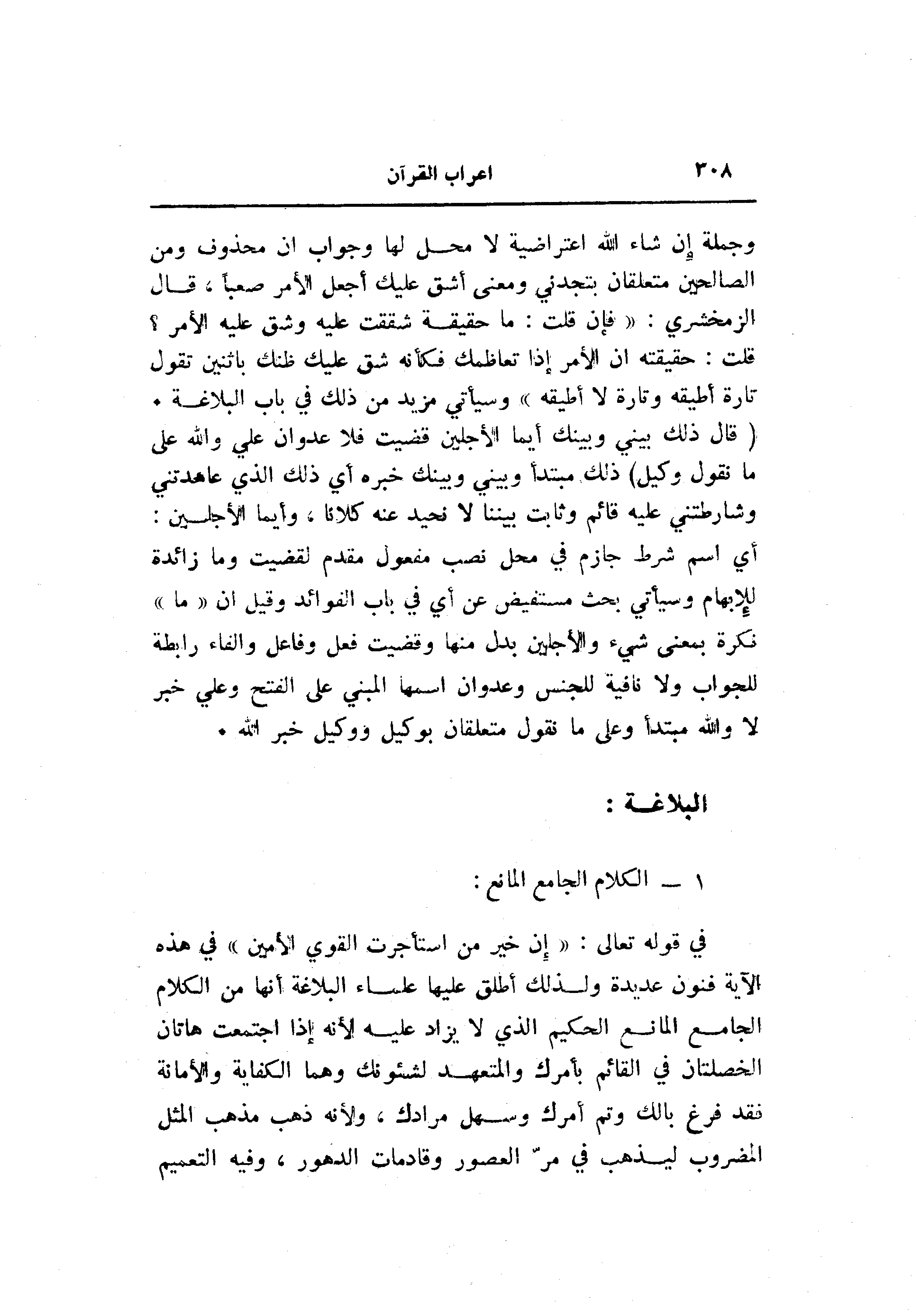 قلت: حقيقته ان الأمر إذا تعاظمك فكأنه شق عليك ظنك باثنين تقول تارة أطيقه وتارة لا أطيقه» وسيأتي مزيد من ذلك في باب البلاغة.