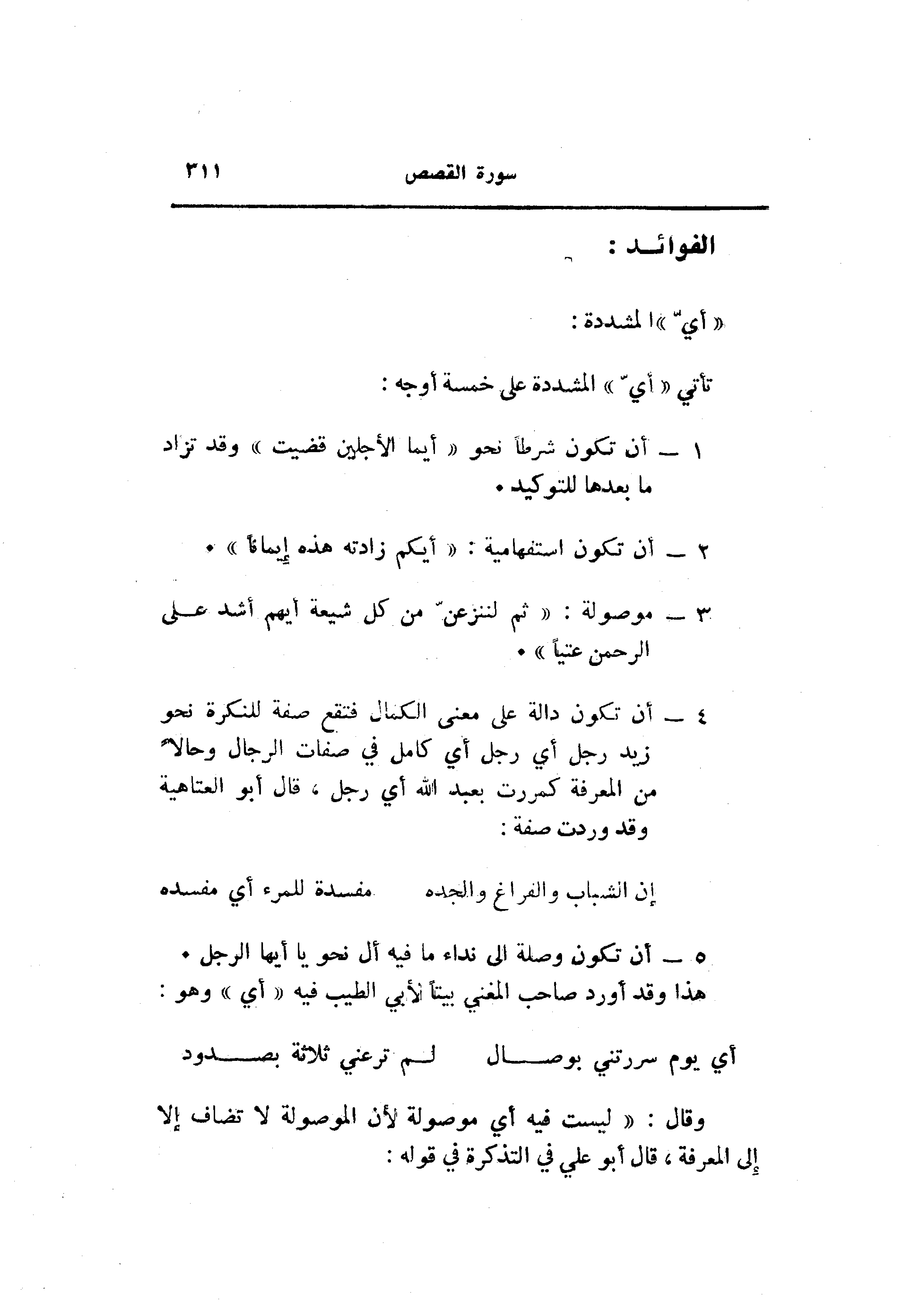 تأتي «أيّ» المشددة على خمسة أوجه: