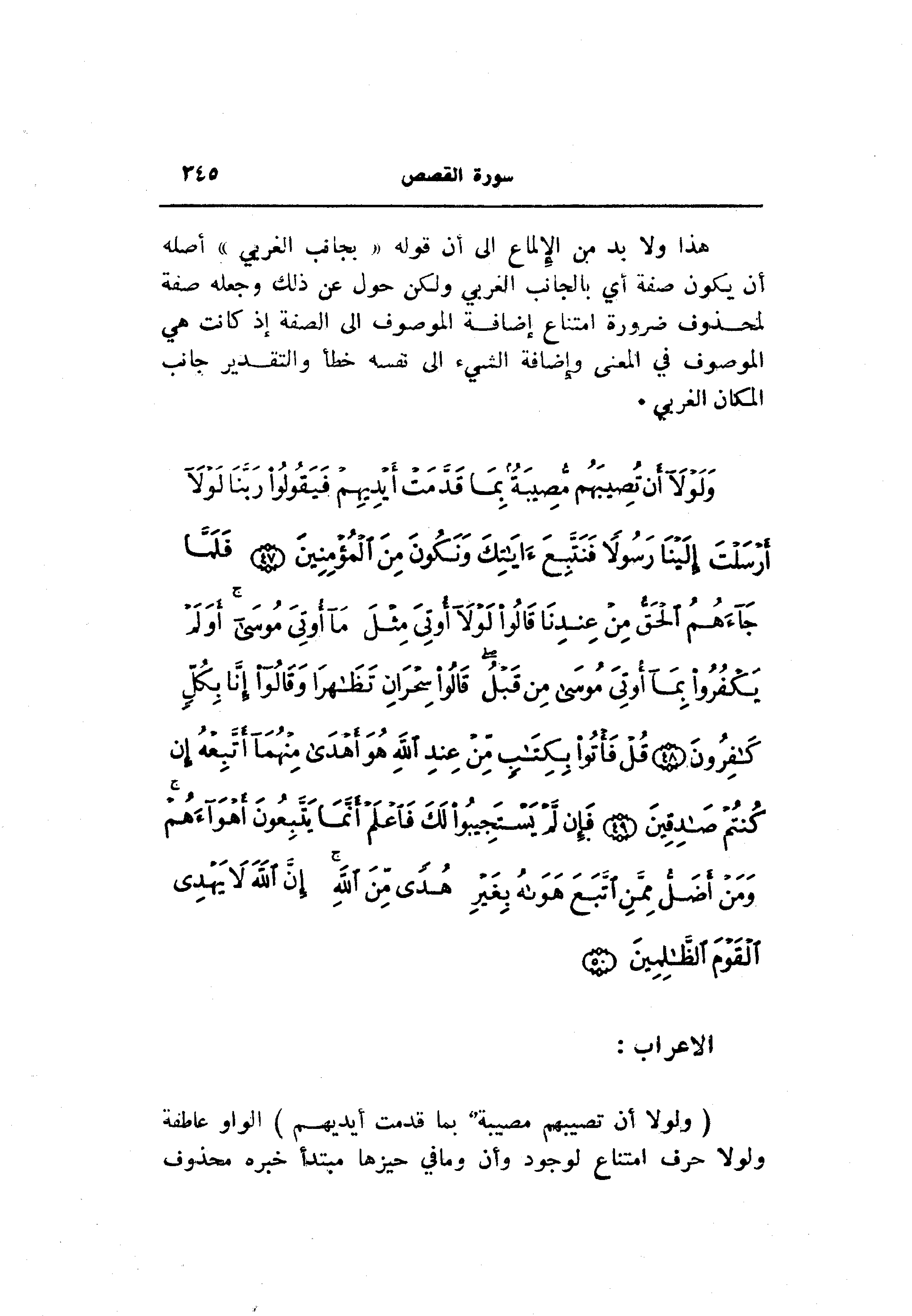 وَلَوْلا أَنْ تُصِيبَهُمْ مُصِيبَةٌ بِما قَدَّمَتْ أَيْدِيهِمْ فَيَقُولُوا رَبَّنا لَوْلا أَرْسَلْتَ إِلَيْنا رَسُولاً فَنَتَّبِعَ آياتِكَ وَنَكُونَ مِنَ الْمُؤْمِنِينَ (47) فَلَمَّا جاءَهُمُ الْحَقُّ مِنْ عِنْدِنا قالُوا لَوْلا أُوتِيَ مِثْلَ ما أُوتِيَ مُوسى أَوَلَمْ يَكْفُرُوا بِما أُوتِيَ مُوسى مِنْ قَبْلُ قالُوا سِحْرانِ تَظاهَرا وَقالُوا إِنَّا بِكُلٍّ كافِرُونَ (48) قُلْ فَأْتُوا بِكِتابٍ مِنْ عِنْدِ اللَّهِ هُوَ أَهْدى مِنْهُما أَتَّبِعْهُ إِنْ كُنْتُمْ صادِقِينَ (49) فَإِنْ لَمْ يَسْتَجِيبُوا لَكَ فَاعْلَمْ أَنَّما يَتَّبِعُونَ أَهْواءَهُمْ وَمَنْ أَضَلُّ مِمَّنِ اتَّبَعَ هَواهُ بِغَيْرِ هُدىً مِنَ اللَّهِ إِنَّ اللَّهَ لا يَهْدِي الْقَوْمَ الظَّالِمِينَ (50)