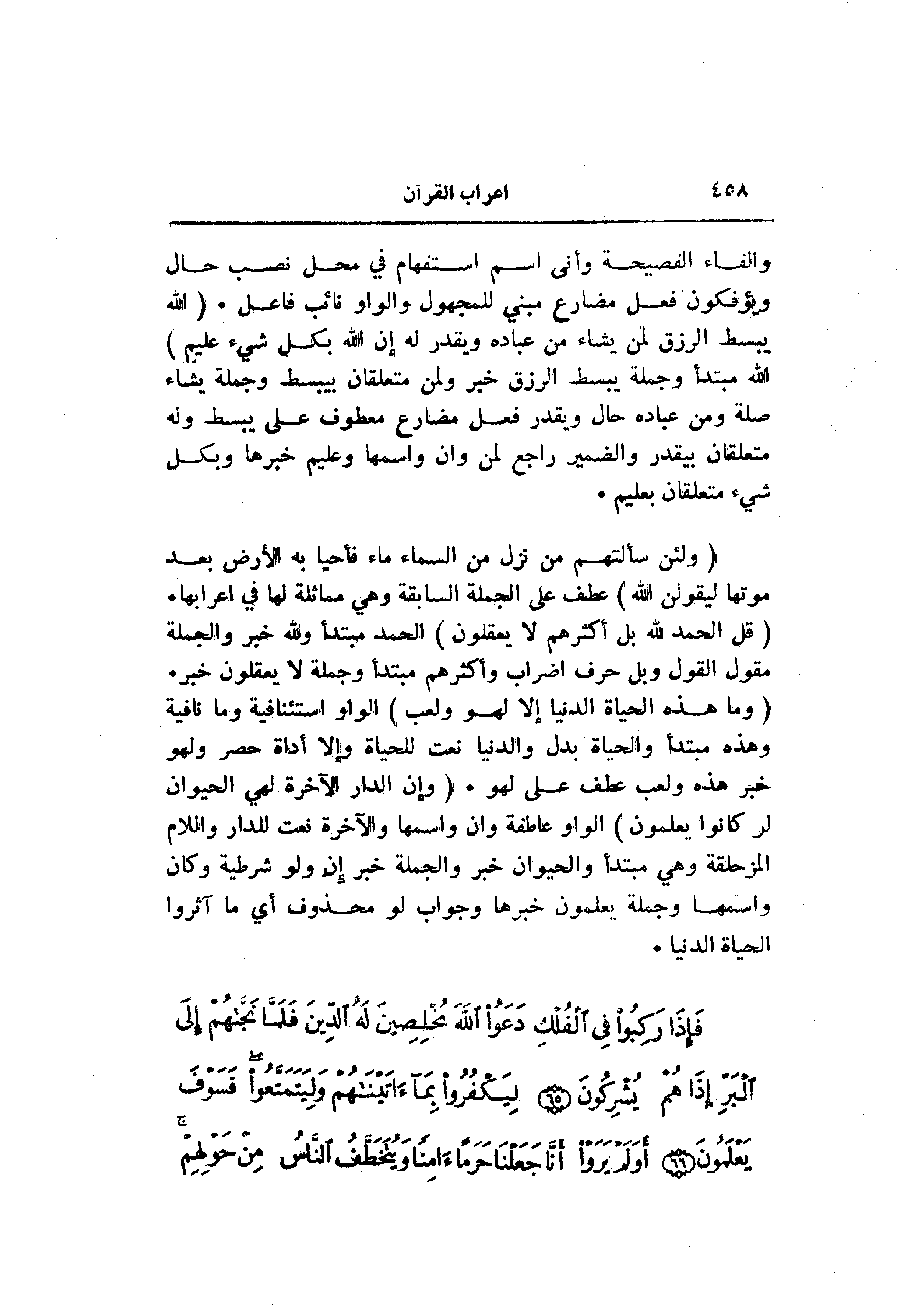 والفاء الفصيحة وأنى اسم استفهام في محل نصب حال ويؤفكون فعل مضارع مبني للمجهول والواو نائب فاعل. (اللَّهُ يَبْسُطُ الرِّزْقَ لِمَنْ يَشاءُ مِنْ عِبادِهِ وَيَقْدِرُ لَهُ إِنَّ اللَّهَ بِكُلِّ شَيْءٍ عَلِيمٌ) الله مبتدأ وجملة يبسط الرزق خبر ولمن متعلقان بيبسط وجملة يشاء صلة ومن عباده حال ويقدر فعل مضارع معطوف على يبسط وله متعلقان بيقدر والضمير راجع لمن وان واسمها وعليم خبرها وبكل شيء متعلقان بعليم.