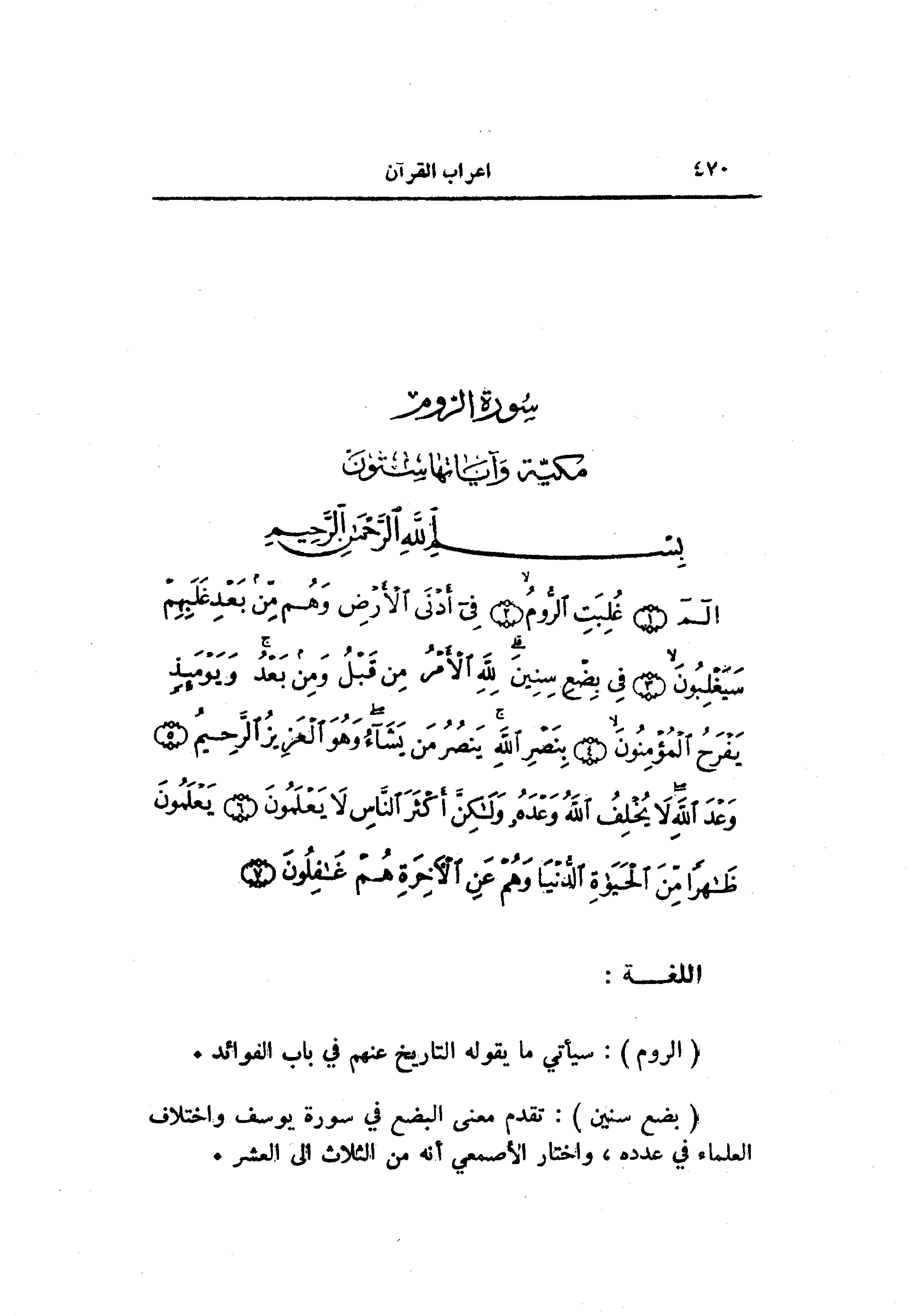 (30) سورة الرّوم مكيّة وآياتها ستون
