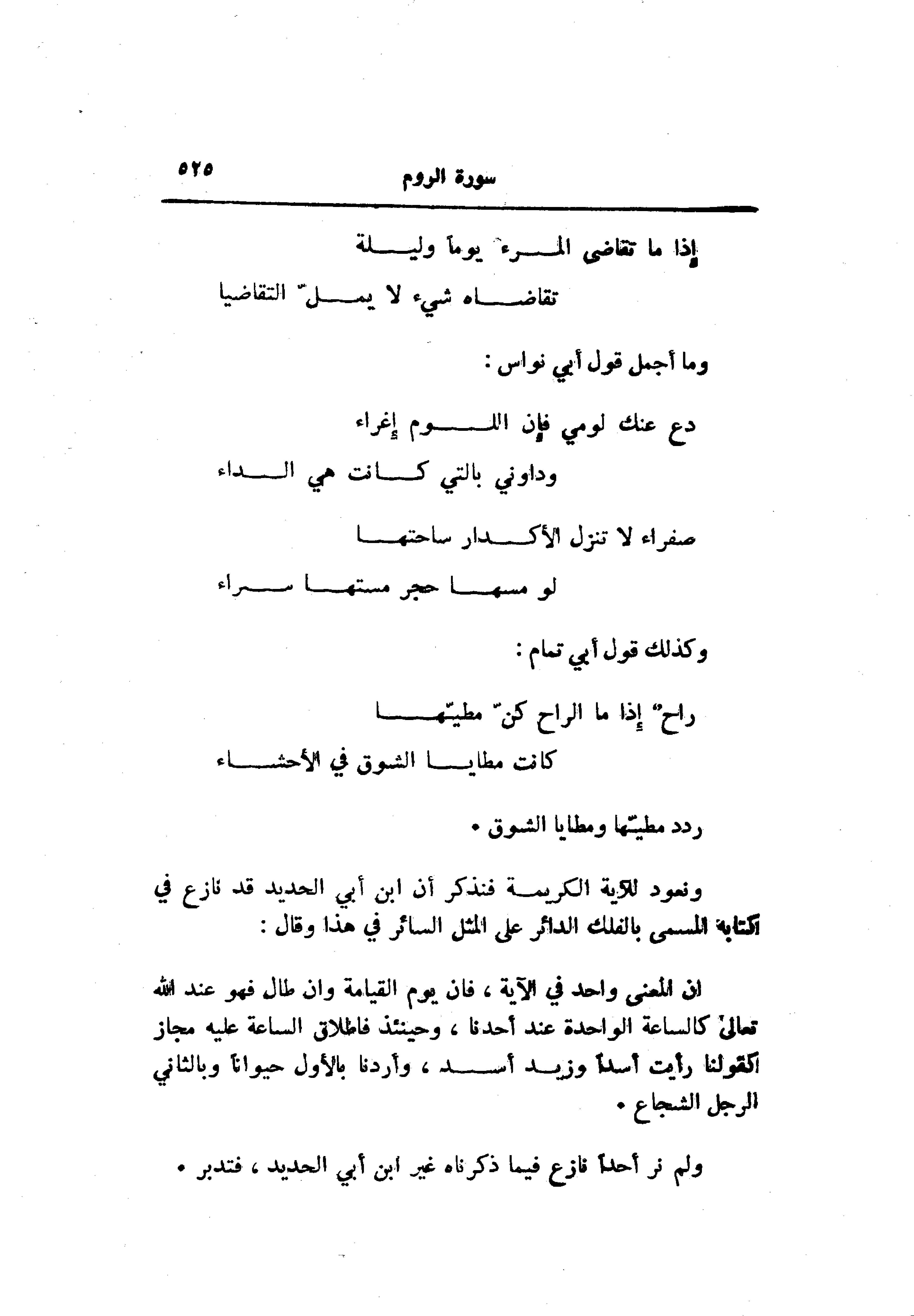 ونعود للآية الكريمة فنذكر أن ابن أبي الحديد قد نازع في كتابه المسمى بالفلك الدائر على المثل السائر في هذا وقال: