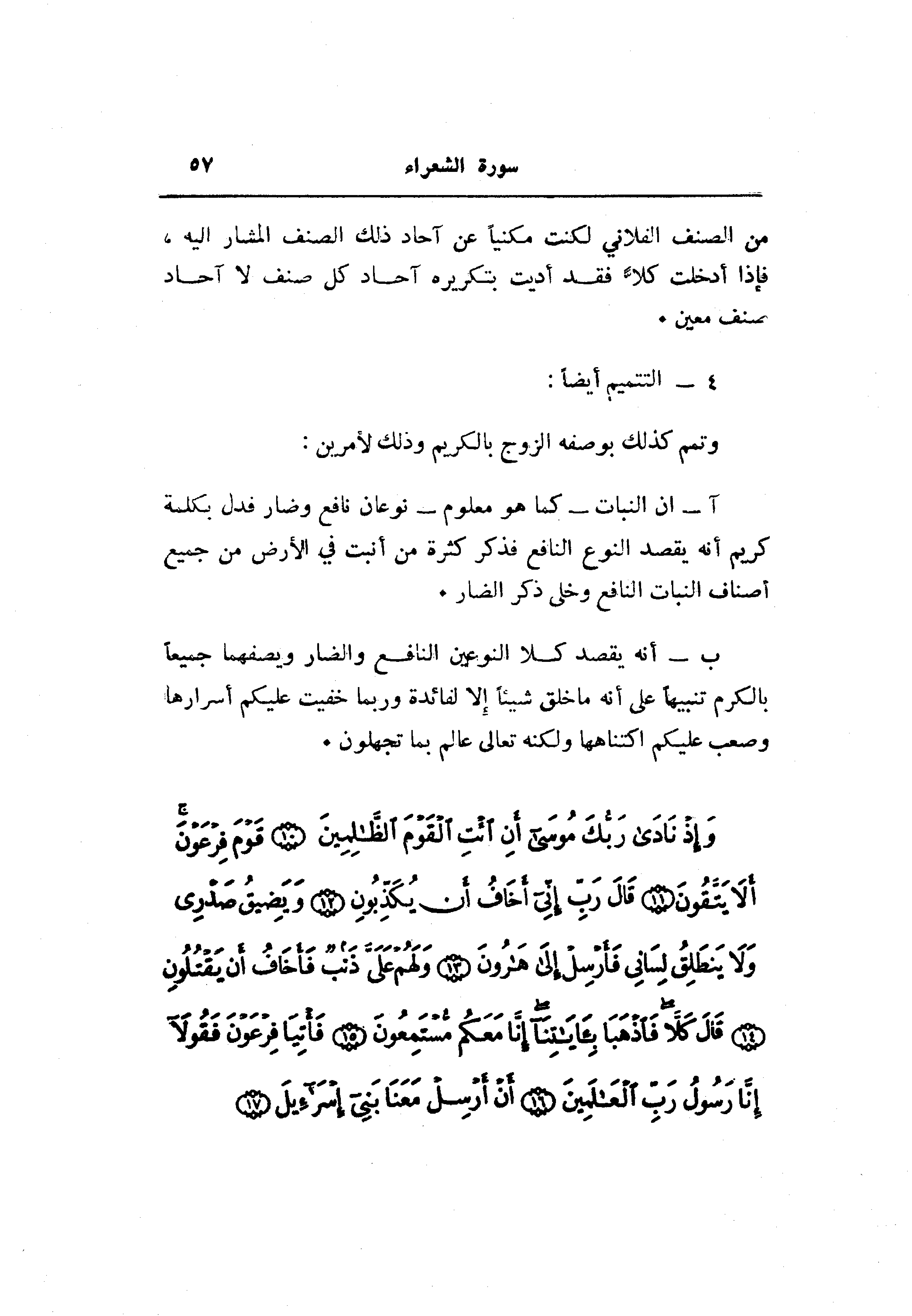 ب- أنه يقصد كلا النوعين النافع والضار ويصفهما جميعا بالكرم تنبيها على أنه ما خلق شيئا إلا لفائدة وربما خفيت عليكم أسرارها وصعب عليكم اكتناهها ولكنه تعالى عالم بما تجهلون.