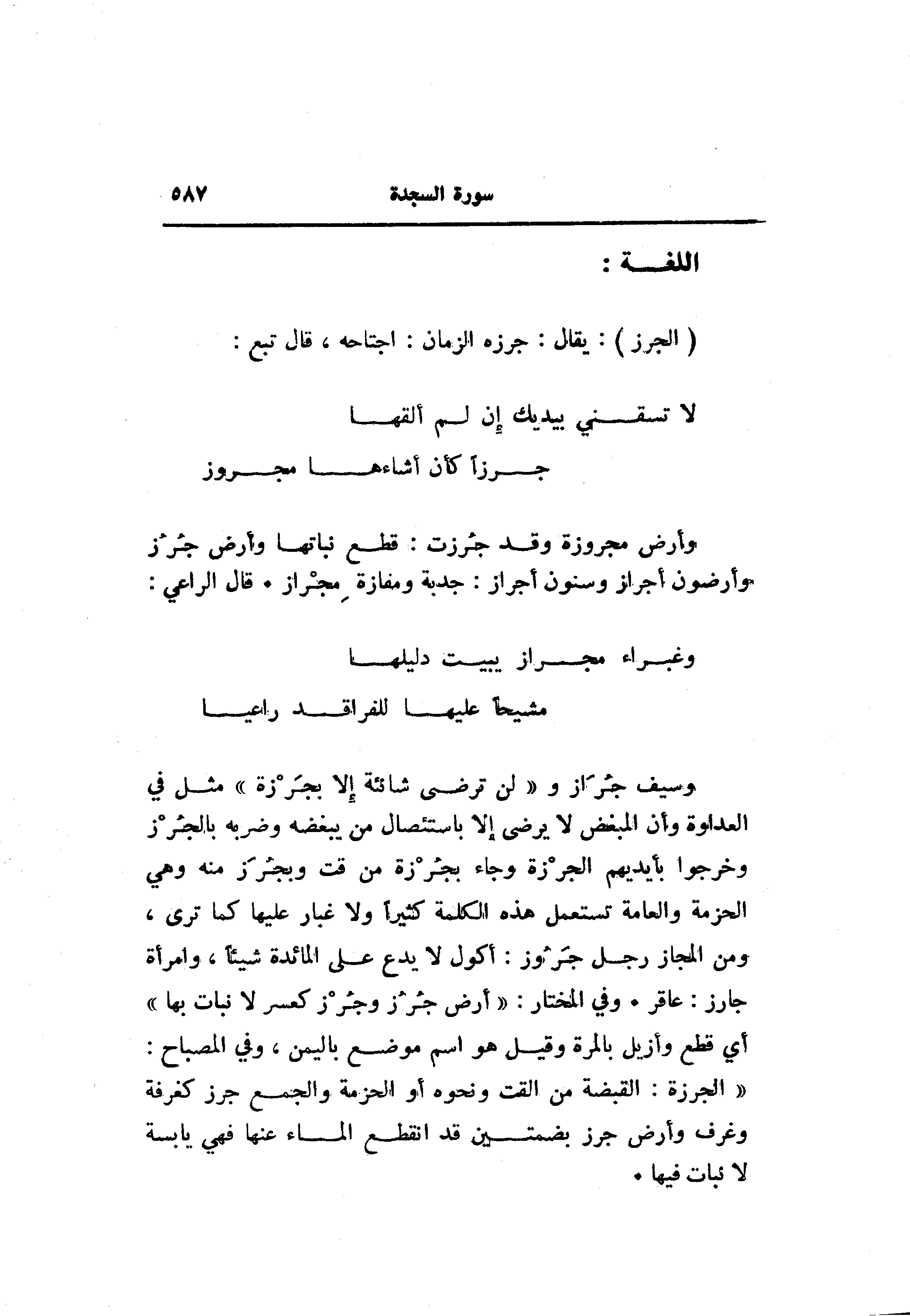 (الْجُرُزِ) : يقال: جرزه الزمان: اجتاحه، قال تبع: