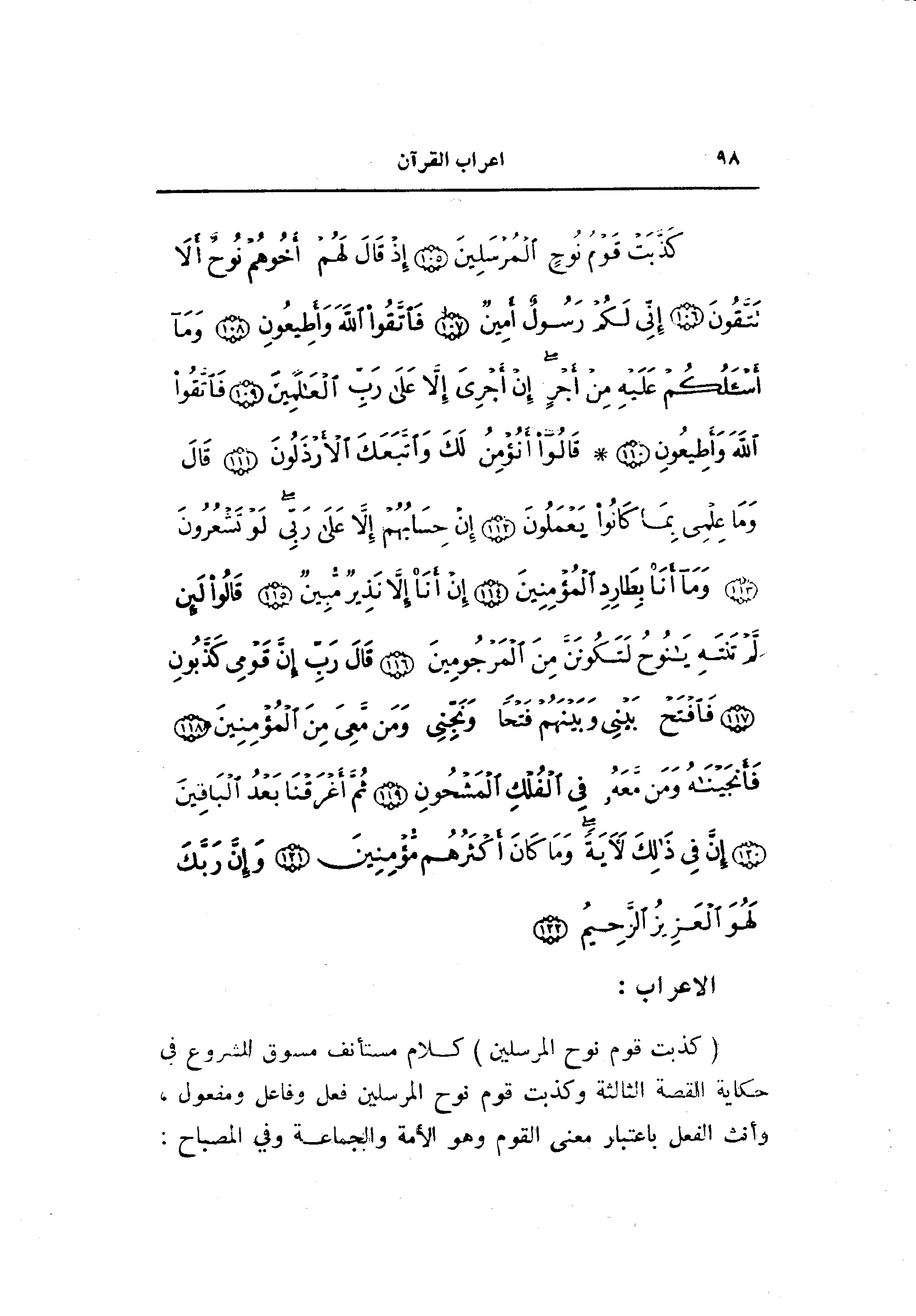 كَذَّبَتْ قَوْمُ نُوحٍ الْمُرْسَلِينَ (105) إِذْ قالَ لَهُمْ أَخُوهُمْ نُوحٌ أَلا تَتَّقُونَ (106) إِنِّي لَكُمْ رَسُولٌ أَمِينٌ (107) فَاتَّقُوا اللَّهَ وَأَطِيعُونِ (108) وَما أَسْئَلُكُمْ عَلَيْهِ مِنْ أَجْرٍ إِنْ أَجْرِيَ إِلاَّ عَلى رَبِّ الْعالَمِينَ (109)