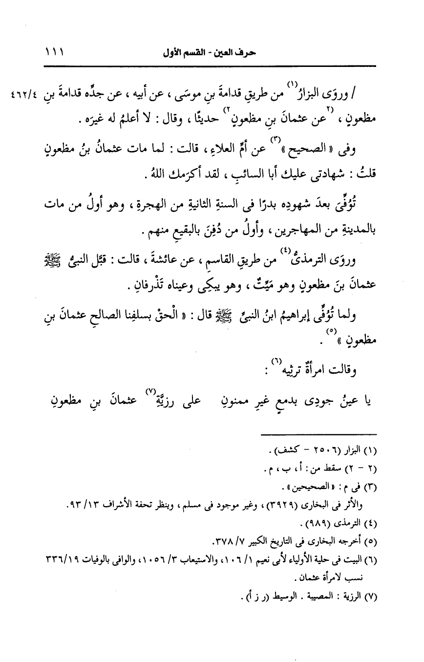يا عين جودي بدمع غير ممنون ... على رزية عثمان بن مظعون