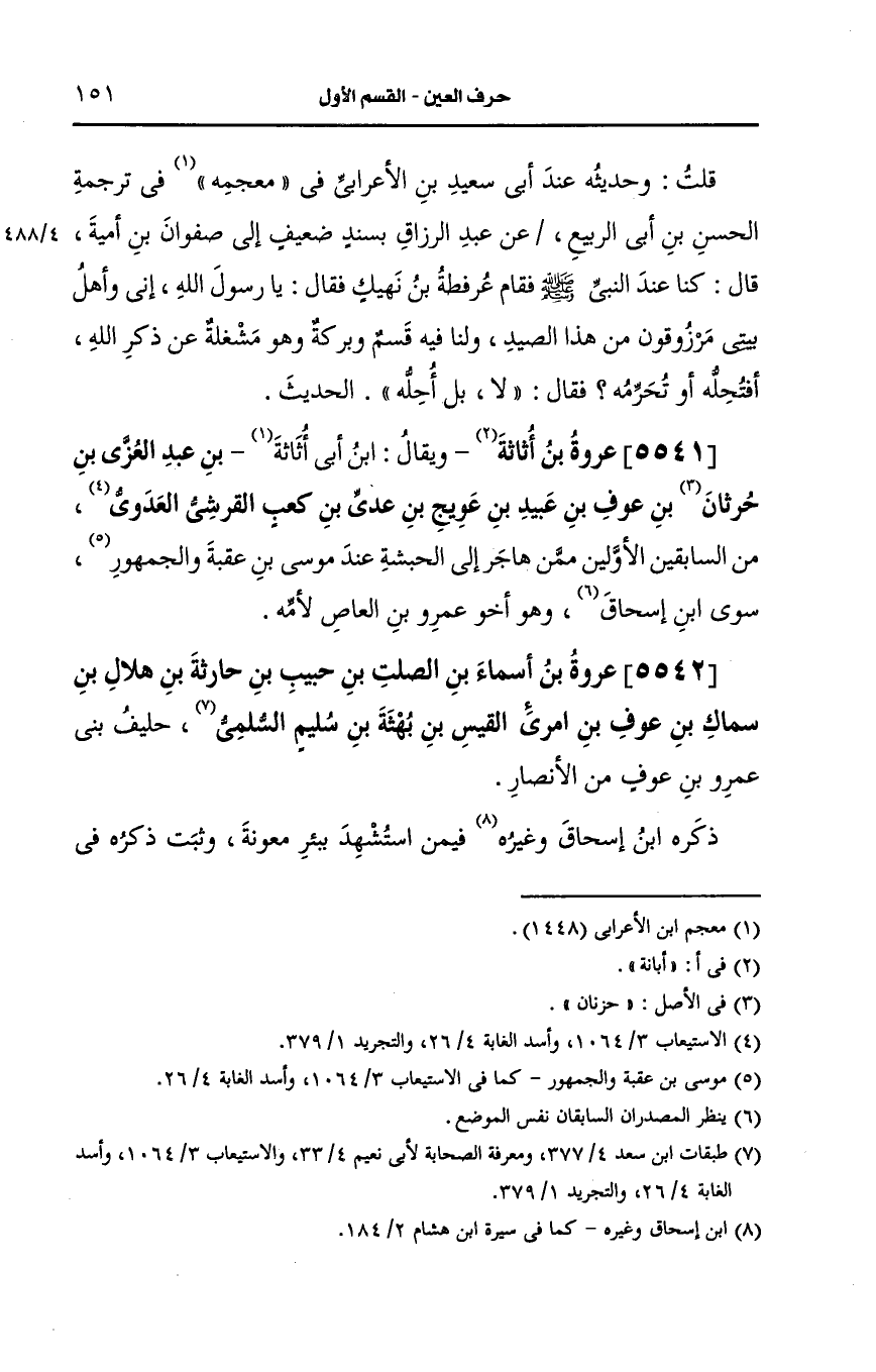 5541- عُروَة بن أثاثة، ويُقال: ابن أبي أثاثة بن عبد العزى بن حرثان بن عوف بن عبيد بن عويج بن عَدِيّ بن كعب، القُرشِيّ العدوي.