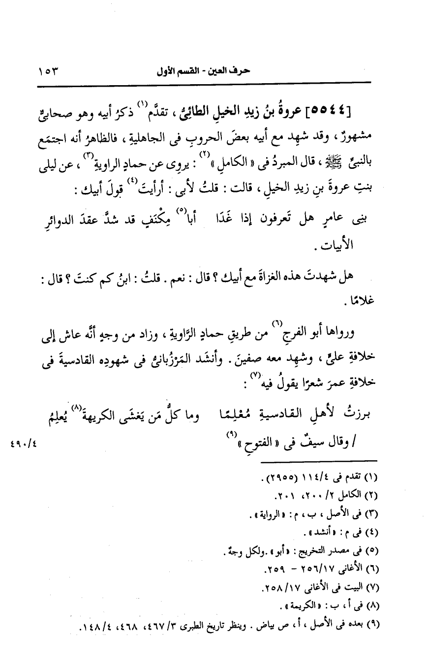 وأنشد المرزباني في شهوده القادسية في خلافة عمر شعرا يقول فيه:
