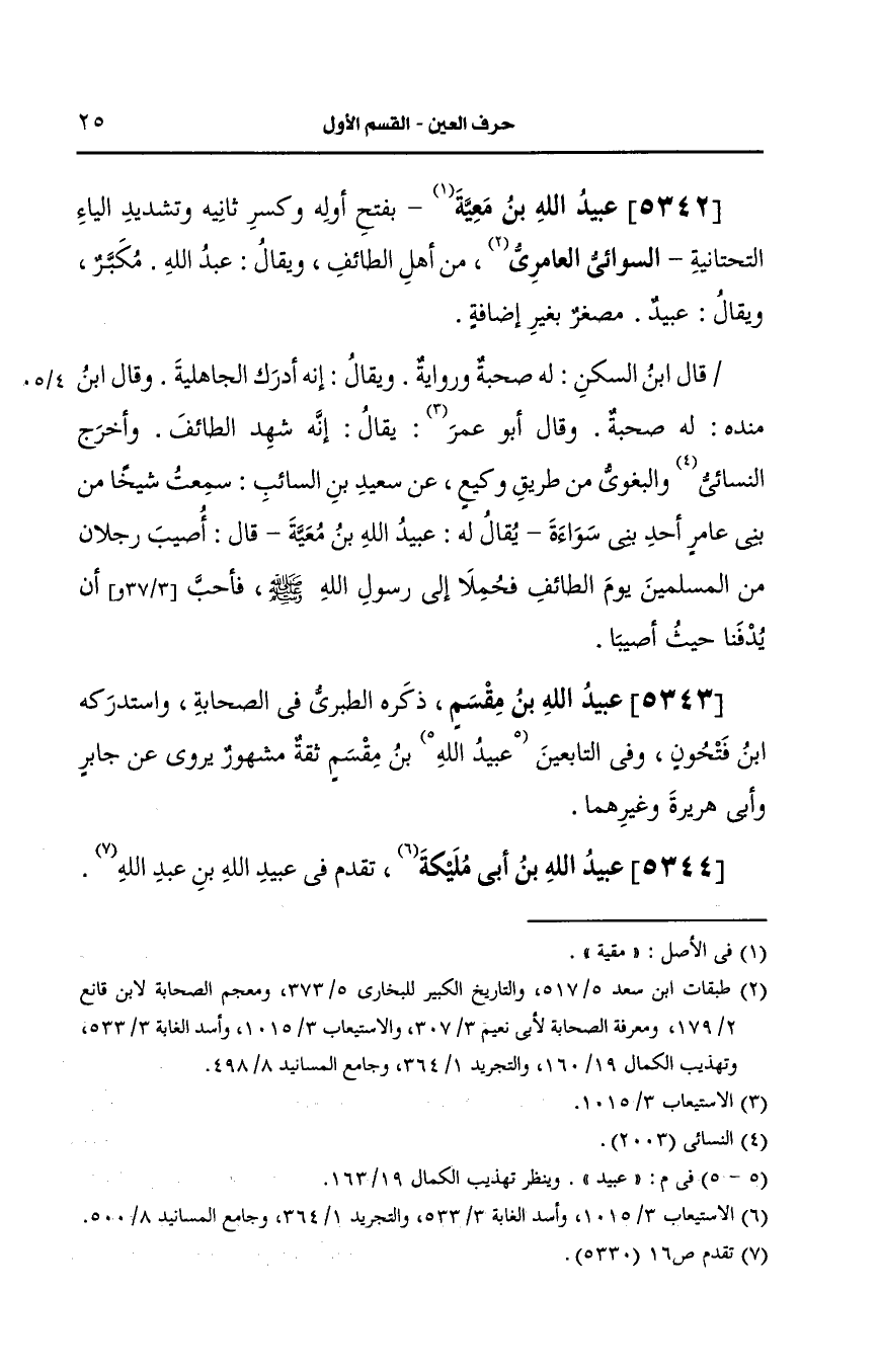 5342- عبيد الله بن معية بفتح أوله وكسر ثانيه وتشديد الياء التحتانية السوائي العامري.