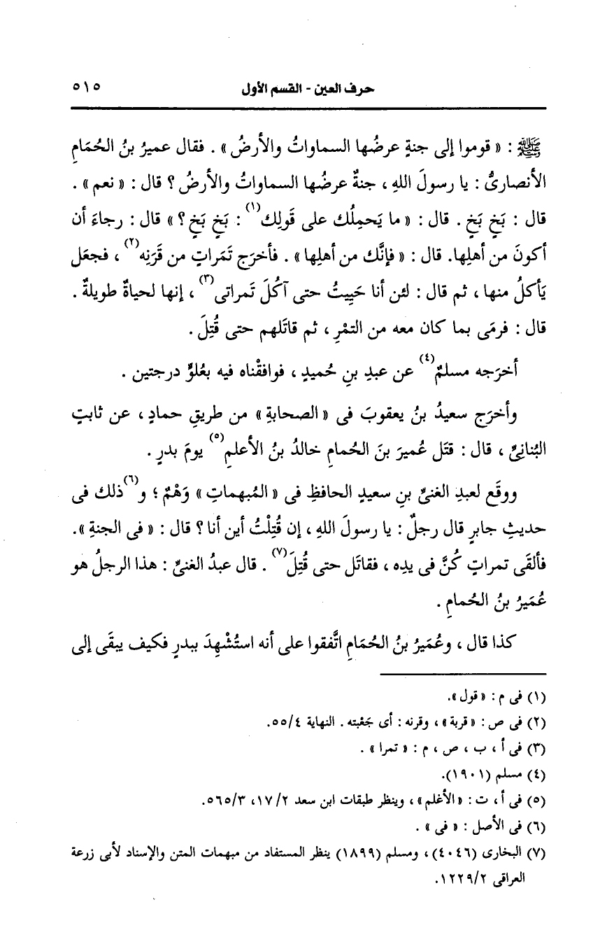 قال عبد الغني هذا الرجل هو عمير بن الحمام.