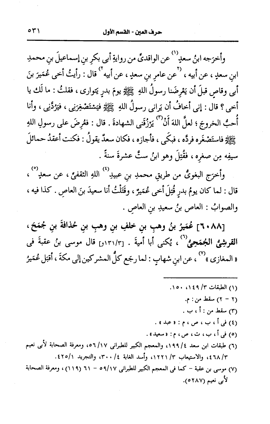 6088- عمير بن وهب بن خلف بن وهب بن حذافة بن جمح، القُرشِيّ الجمحي، يُكنى أَبا أمية.