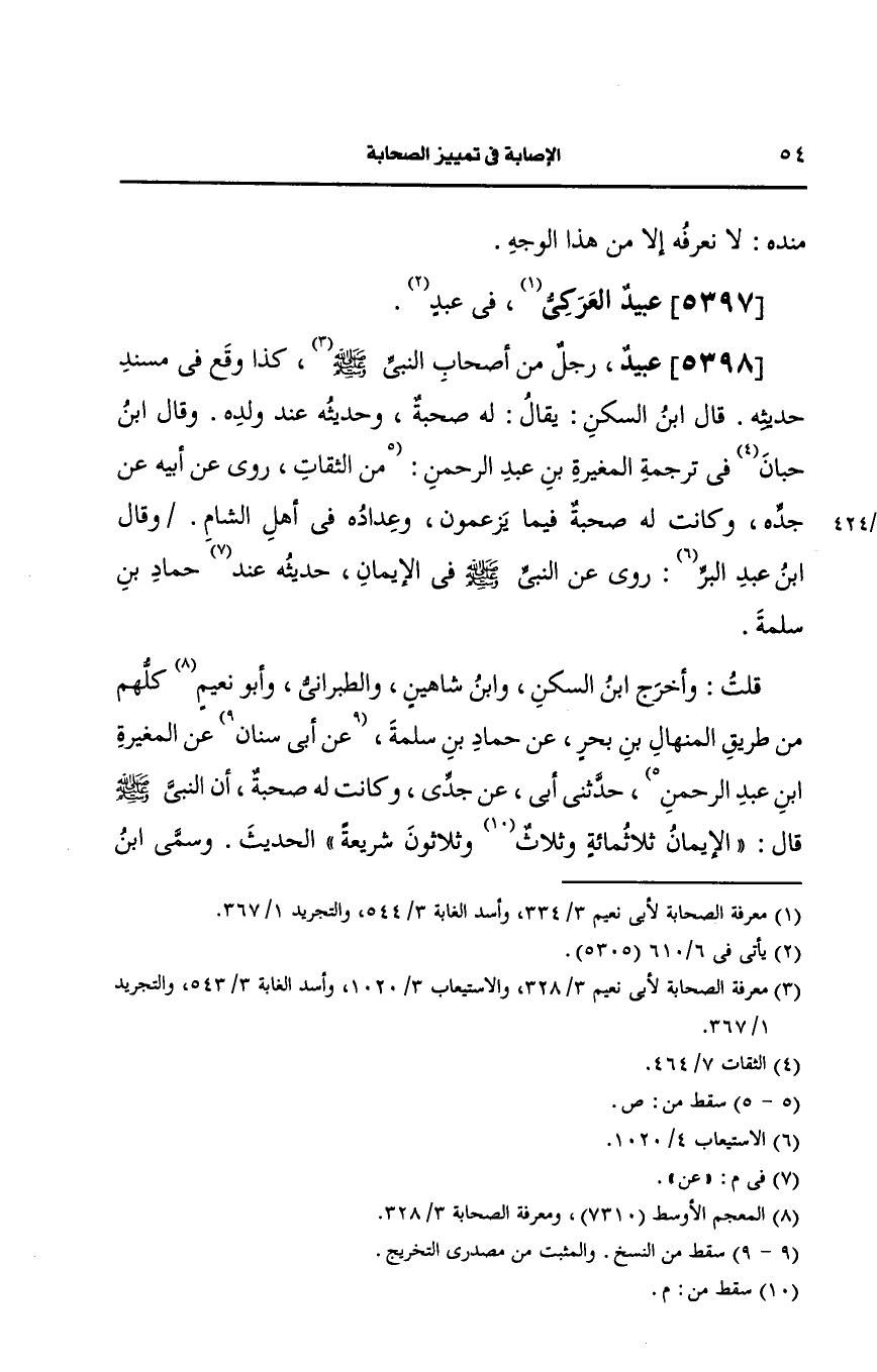 5398- عبيد رجل من أصحابِ النَّبِيِّ صَلى الله عَلَيه وسَلم.