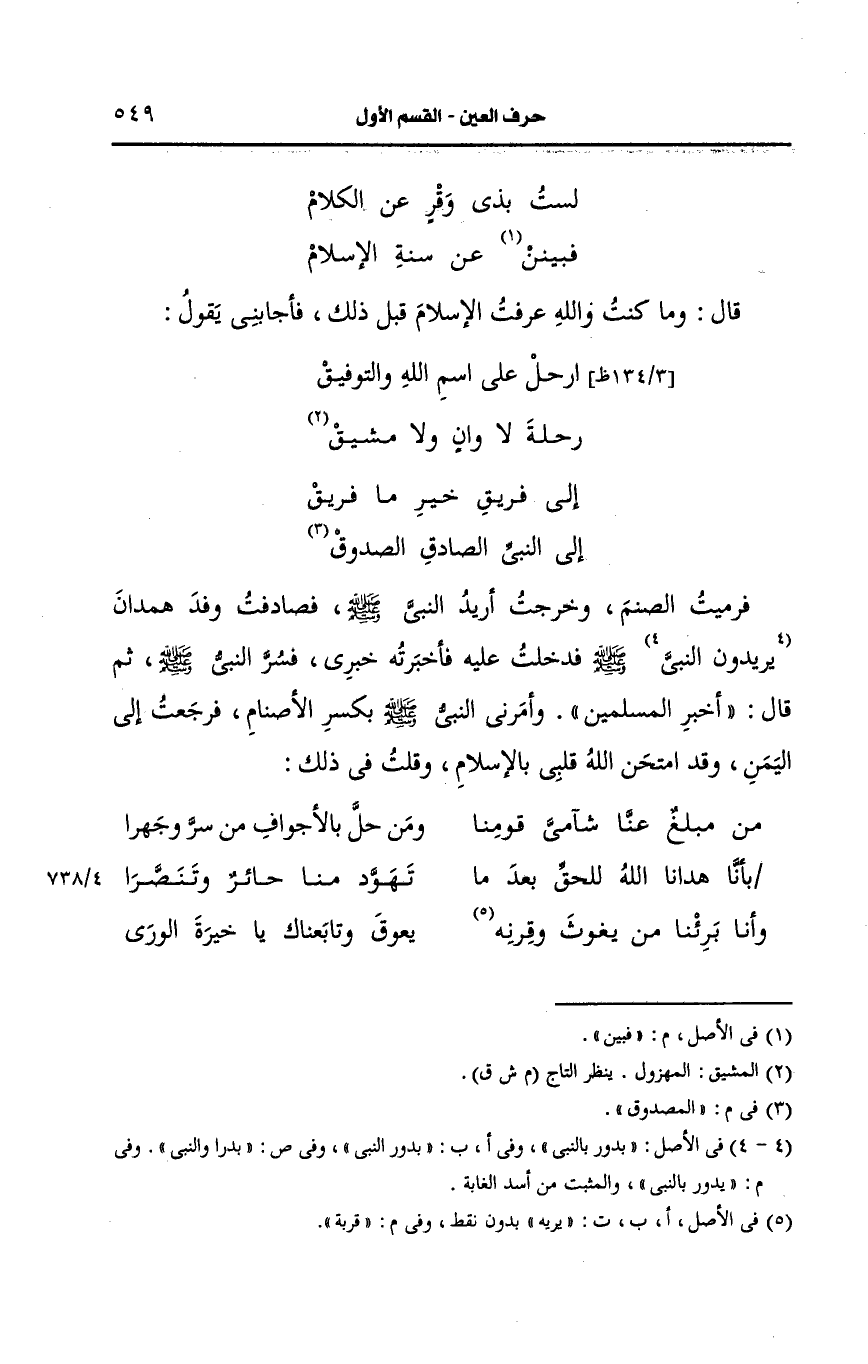 فرميت الصنم وخرجت أريد النَّبيّ صَلى الله عَلَيه وسَلم فصادفت وفد همدان يدور بالنَّبِيِّ صَلى الله عَلَيه وسَلم فدخلت عليه فأخبرته خبري فسر النَّبيّ صَلى الله عَلَيه وسَلم ثم قال: أخبر المسلمين" وأمرني النَّبيّ صَلى الله عَلَيه وسَلم بكسر الأصنام فرجعت إلى اليمن وقد امتحن الله قلبي بالإسلام وقلت في ذلك:
