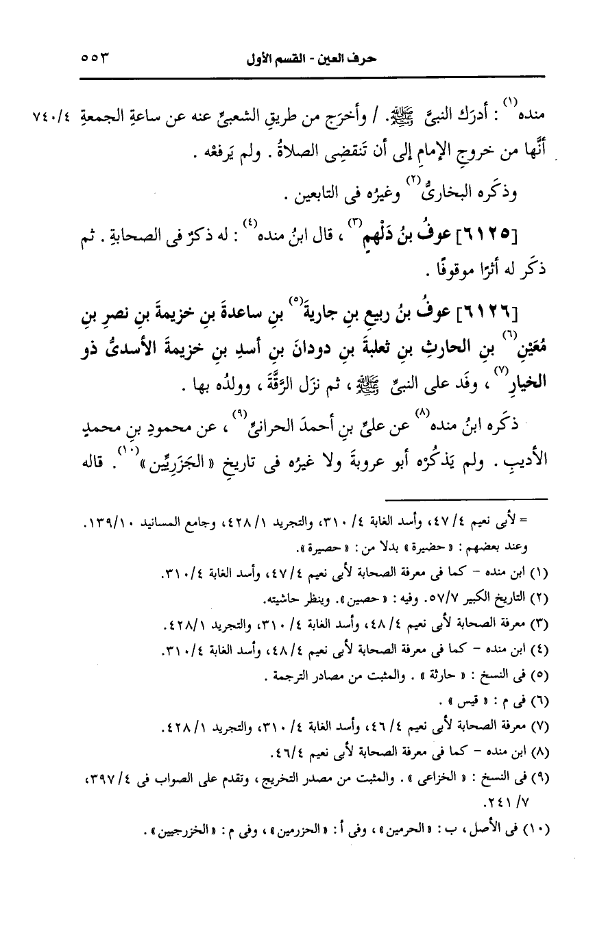 6126- عوف بن ربيع بن حارثة بن ساعدة بن خزيمة بن نصر بن قيس بن الحارث بن ثعلبة بن دودان بن أسد بن خزيمة الأسدي ذو الخيار.