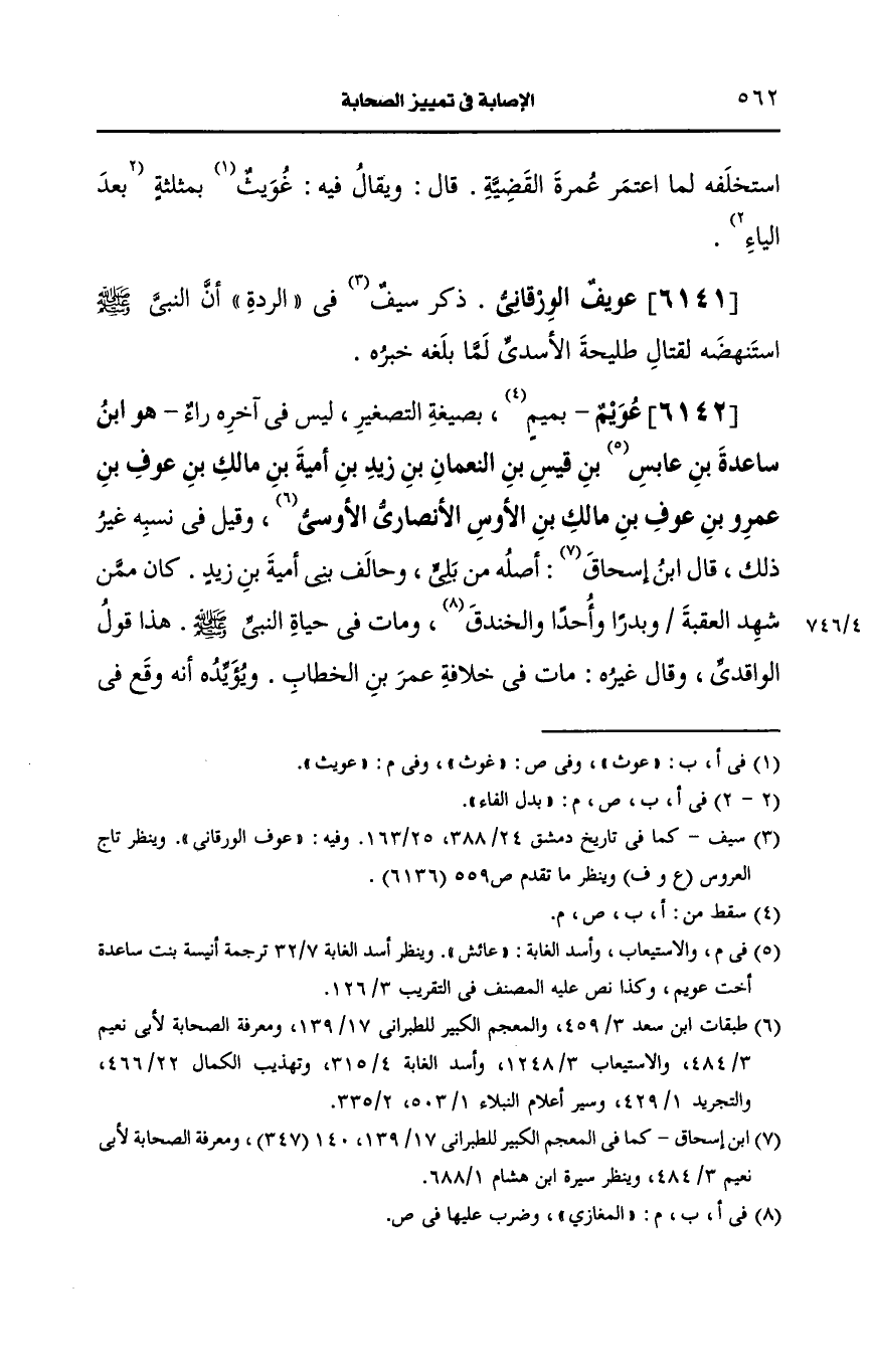 كتاب الإصابة في تمييز الصحابة (ط هجر) (اسم الجزء: 7)