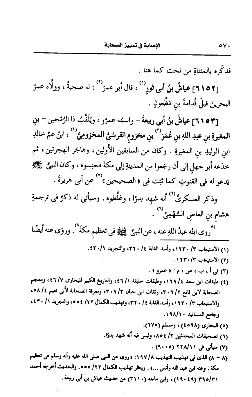 6153- عياش بن أبي ربيعة واسمه عَمرو ويلقب ذا الرمحين بن المغيرة بن عَبد الله بن عَمرو بن مخزوم، القُرشِيّ المخزومي، ابن عم خالد بن الوليد بن المغيرة.