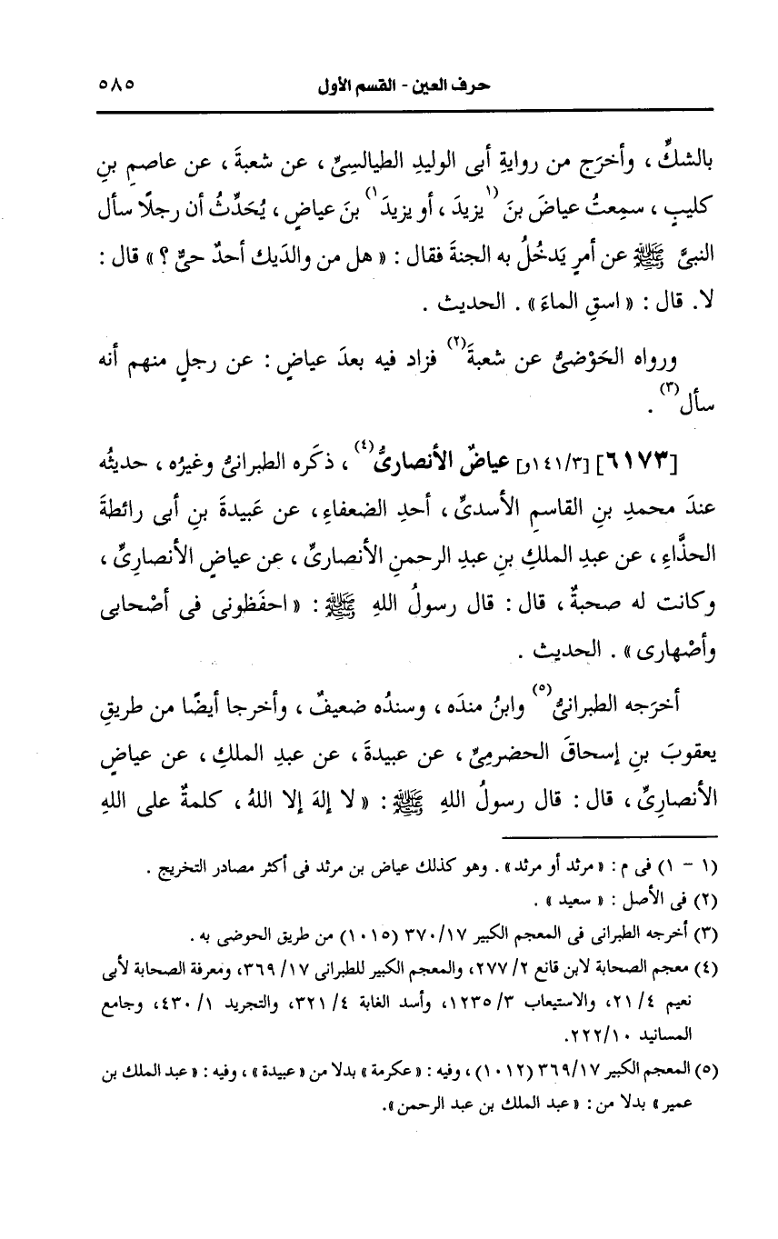 أَخرجه الطبراني، وابن مَنْدَه وسنده ضعيف وأخرجاه أيضًا من طريق يعقوب بن إسحاق الحضرمي، عَن عبيدة، عَن عبد الملك، عَن عياض، الأَنصارِيّ قال: قال رَسُولُ اللهِ صَلى الله عَلَيه وسَلم "لا إله إلا الله كلمة على الله كريمة ولها من الله مكان".