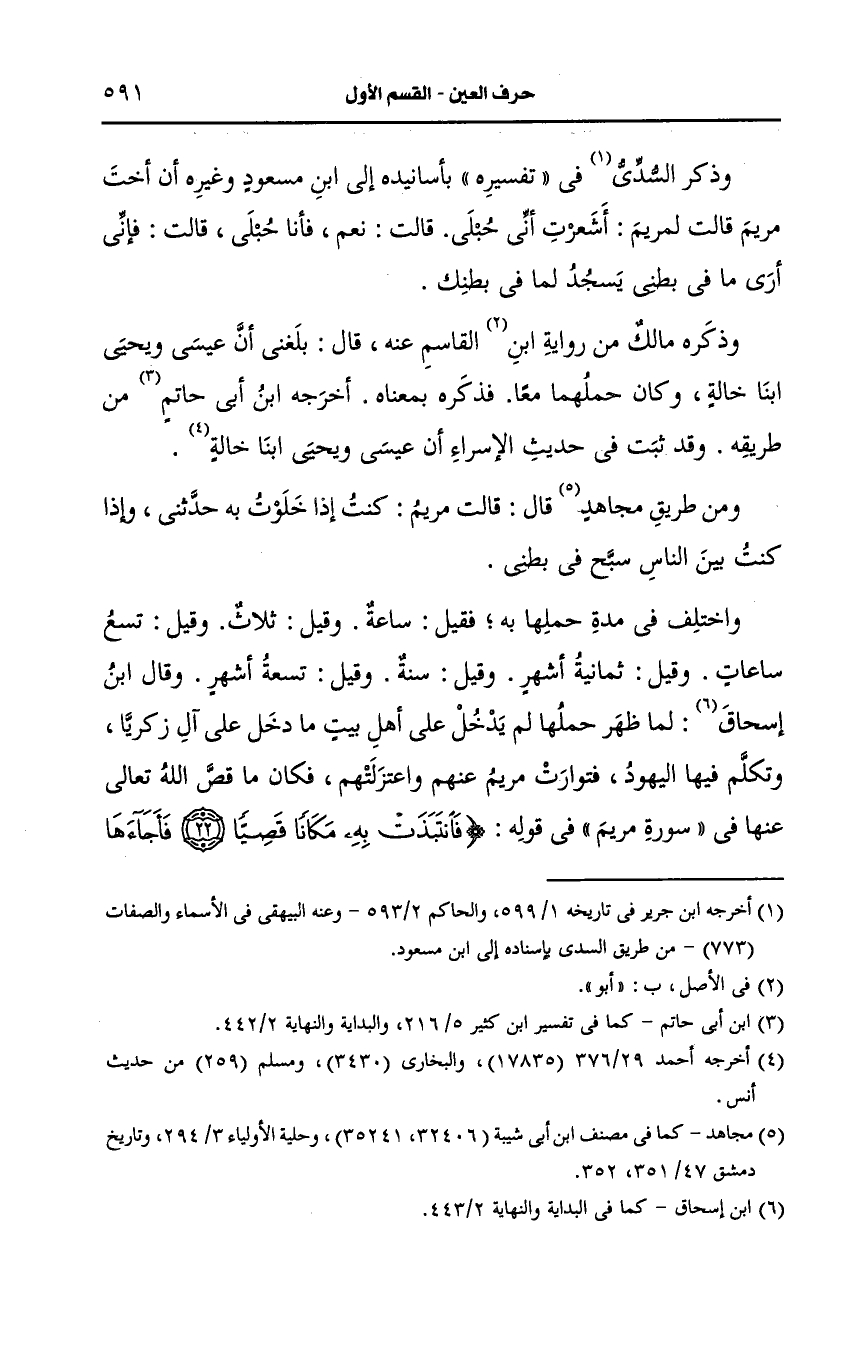 واختلف في مدة حملها به فقيل ساعة وقيل ثلاث وقيل تسع ساعات وقيل ثمانية أشهر وقيل سنة وقيل تسعة أشهر.