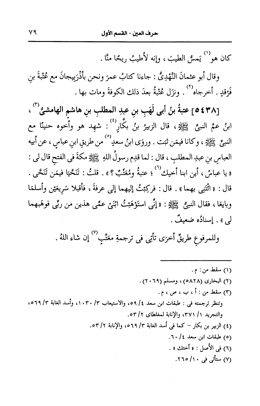 5438- عتبة بن أبي لهب بن عبد المطلب بن هاشم، ابن عم النَّبيّ صَلى الله عَلَيه وسَلم.