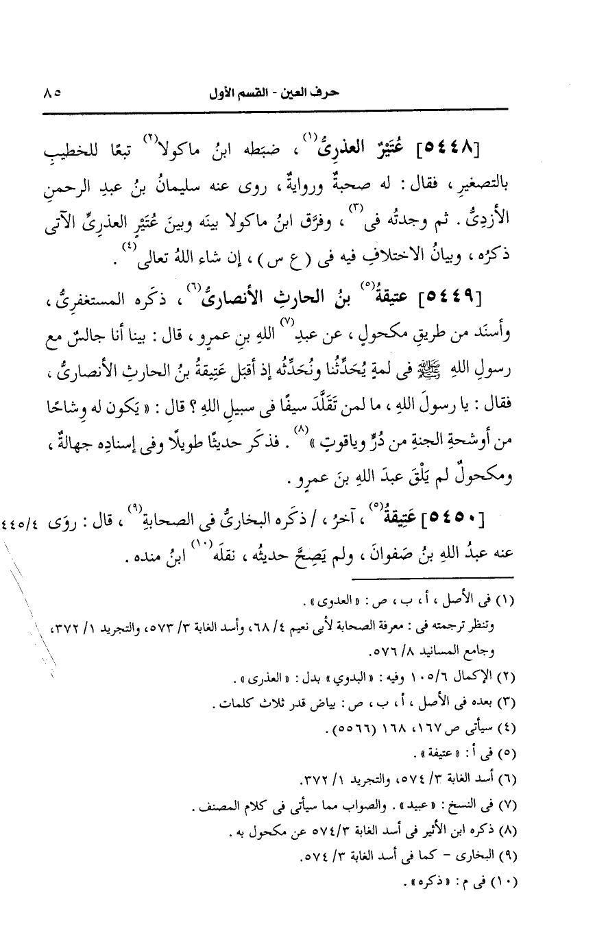 روى عنه سليمان بن عبد الرحمن الأزدي ثم وجدته في ...وفرق ابن ماكولا بينه وبين عتير العذري الآتي ذكره وبيان الاختلاف فيه في العين والسين إن شاء الله تعالى.